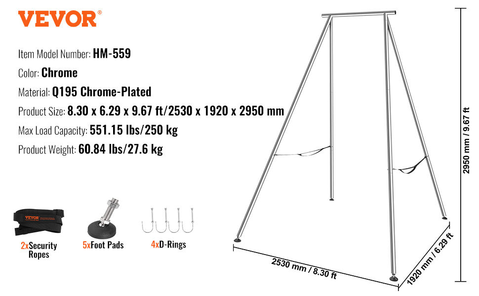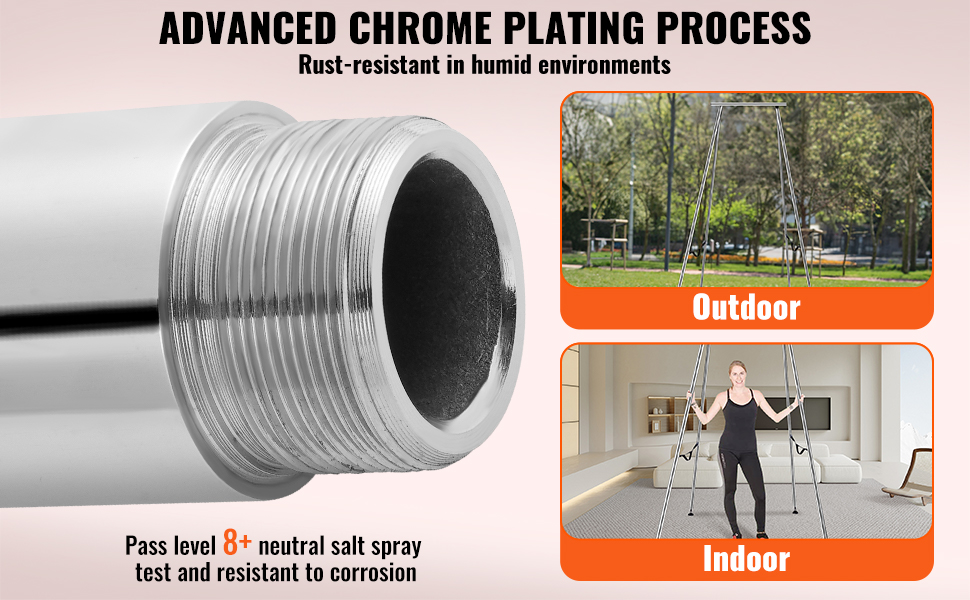 Enhanced Rust-Proof Coating: Our yoga swing stand's surface undergoes meticulous chrome plating, not only giving it a shiny and appealing look but also passing level 8+ neutral salt spray tests. This means it's built to withstand rust, ensuring long-lasting durability in various environments.