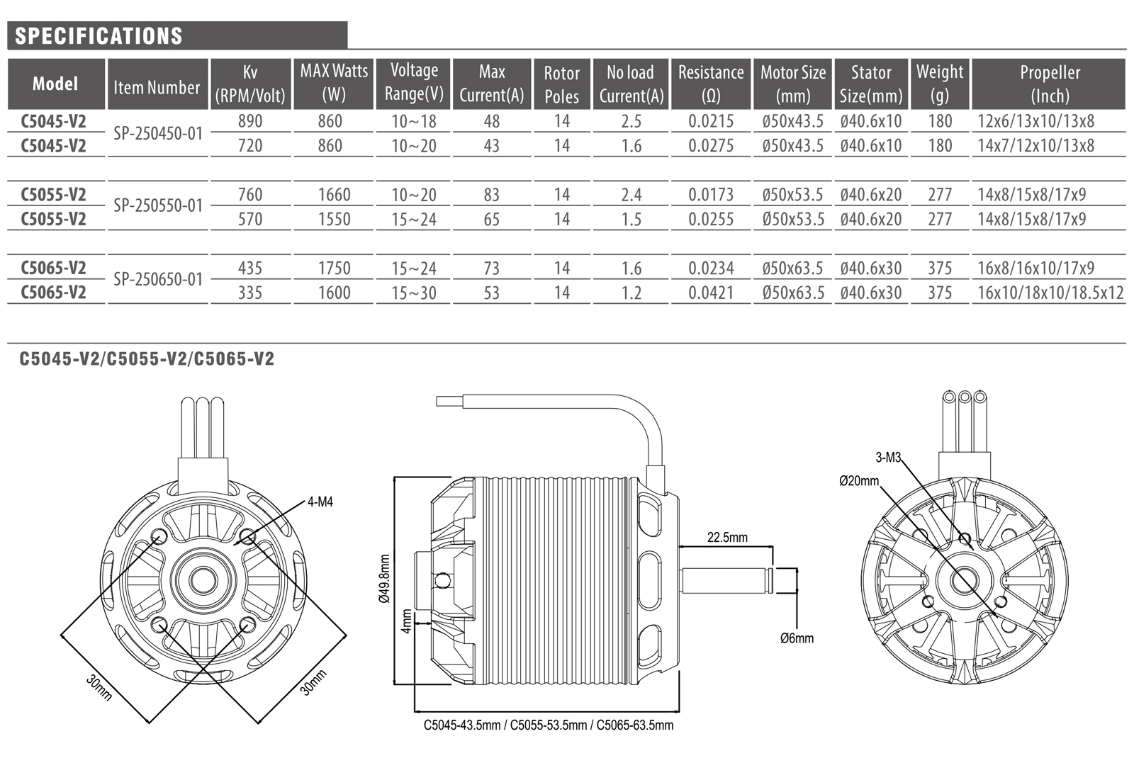 KV(RPM/Volt): 720KV/890KV/570KV/760KV/335KV/435KV Optional