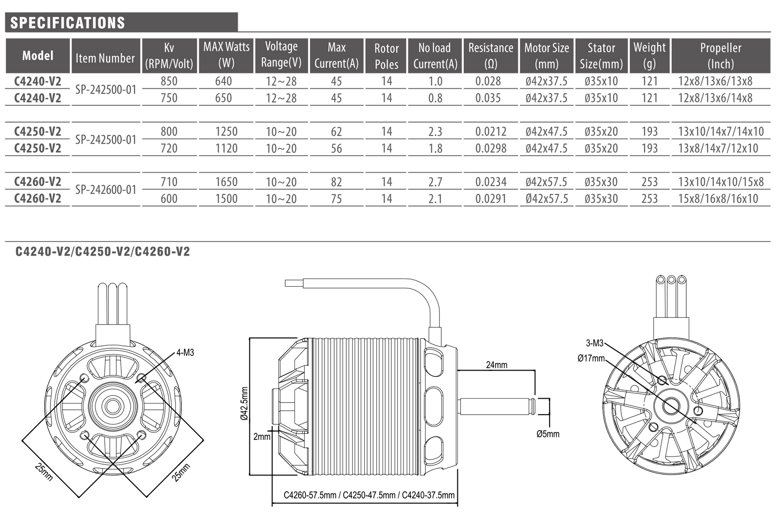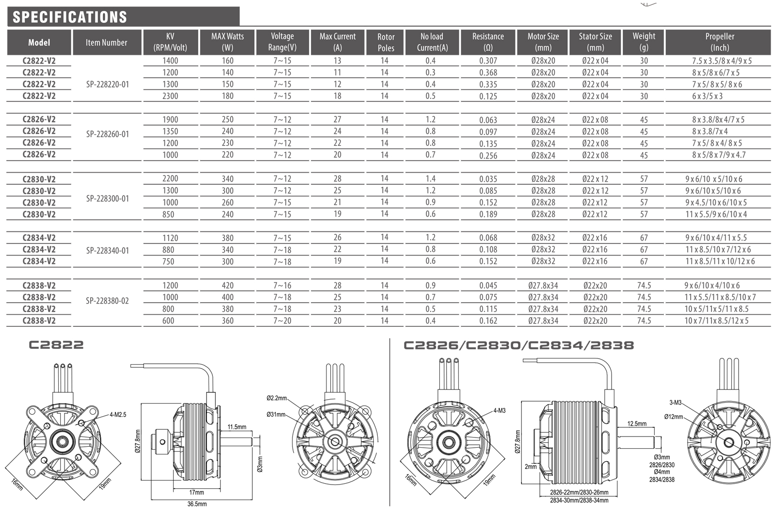 SURPASS HOBBY Outrunner Brushless Motor C28/C35/C42/C50 Series Flier V2 14 Poles for RC Airplane Fixed-wing Drone Aircraft