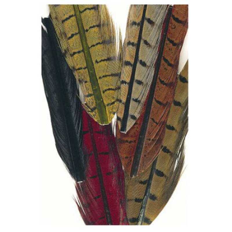 Cock Pheasant Natural & Dyed Mixed Centre Tail Pieces - 6 pieces of different coloured tail sections.