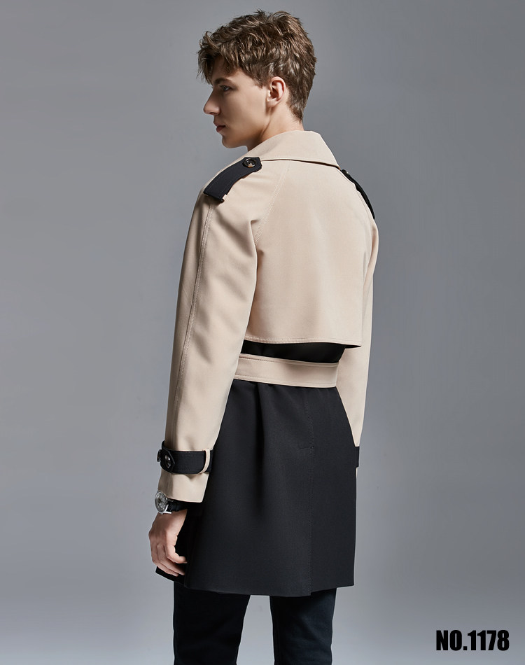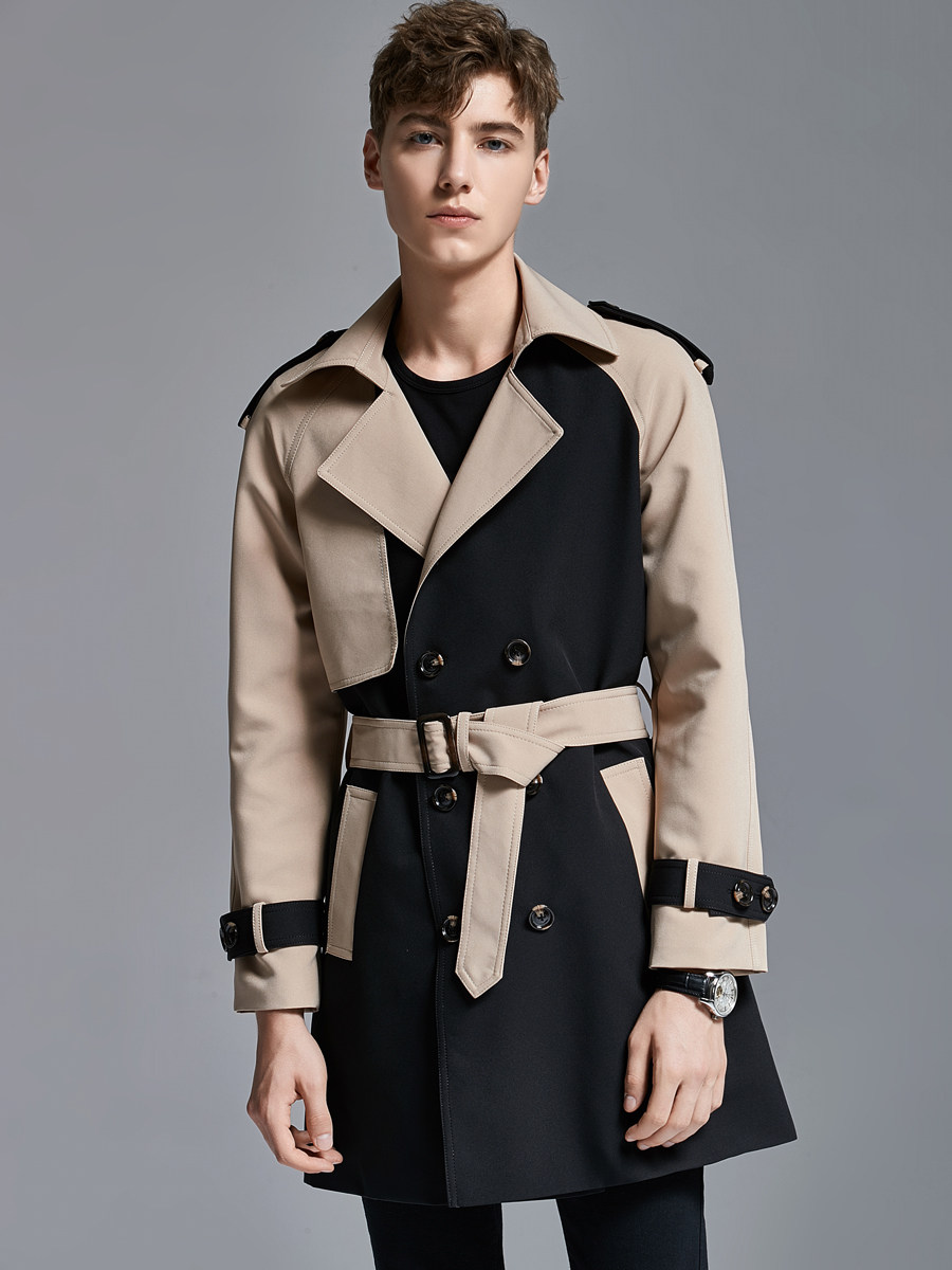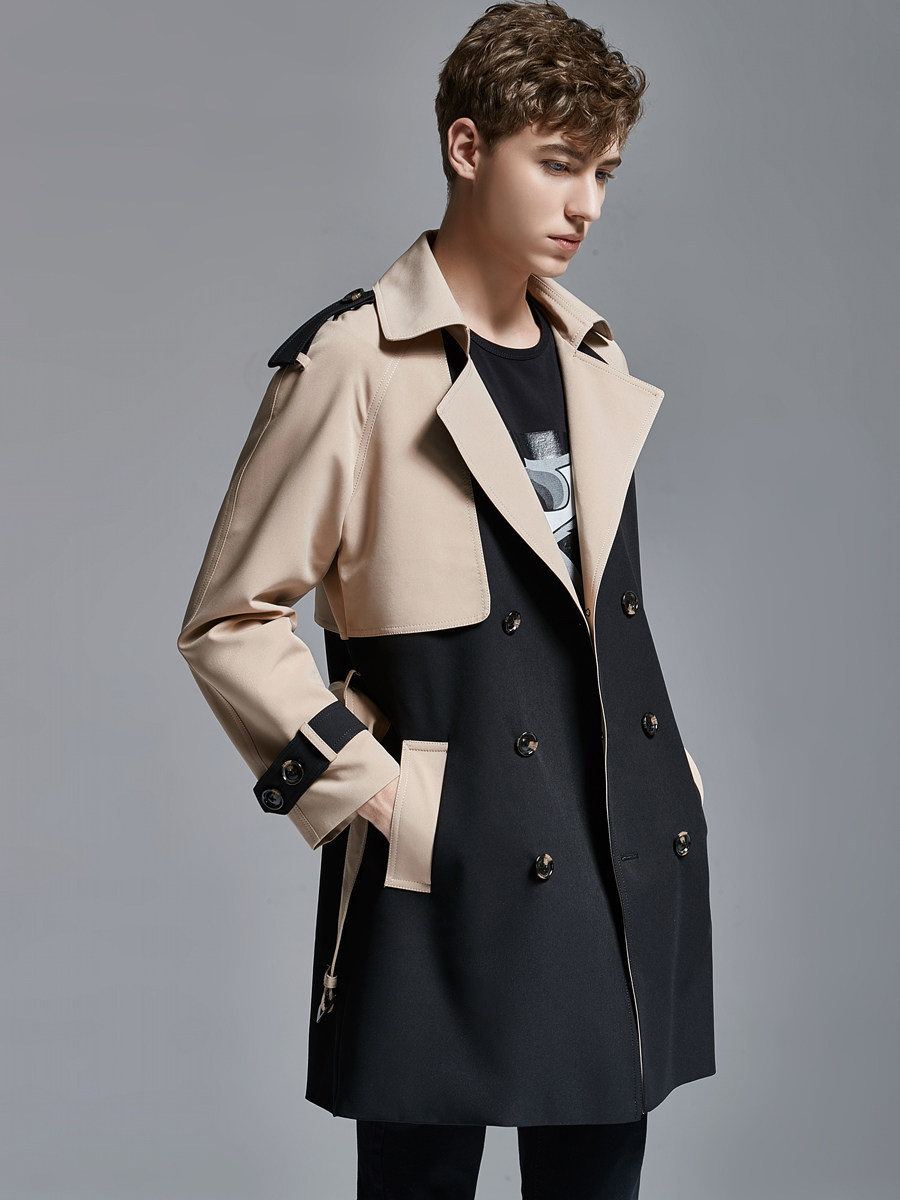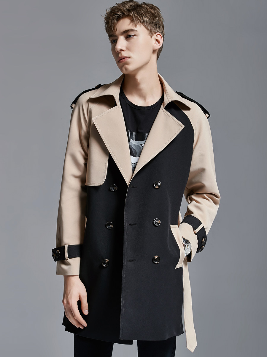 2025 Spring Men's Trench Coat Mid Long Big Collar Fashion Double Breasted Jacket