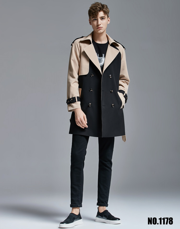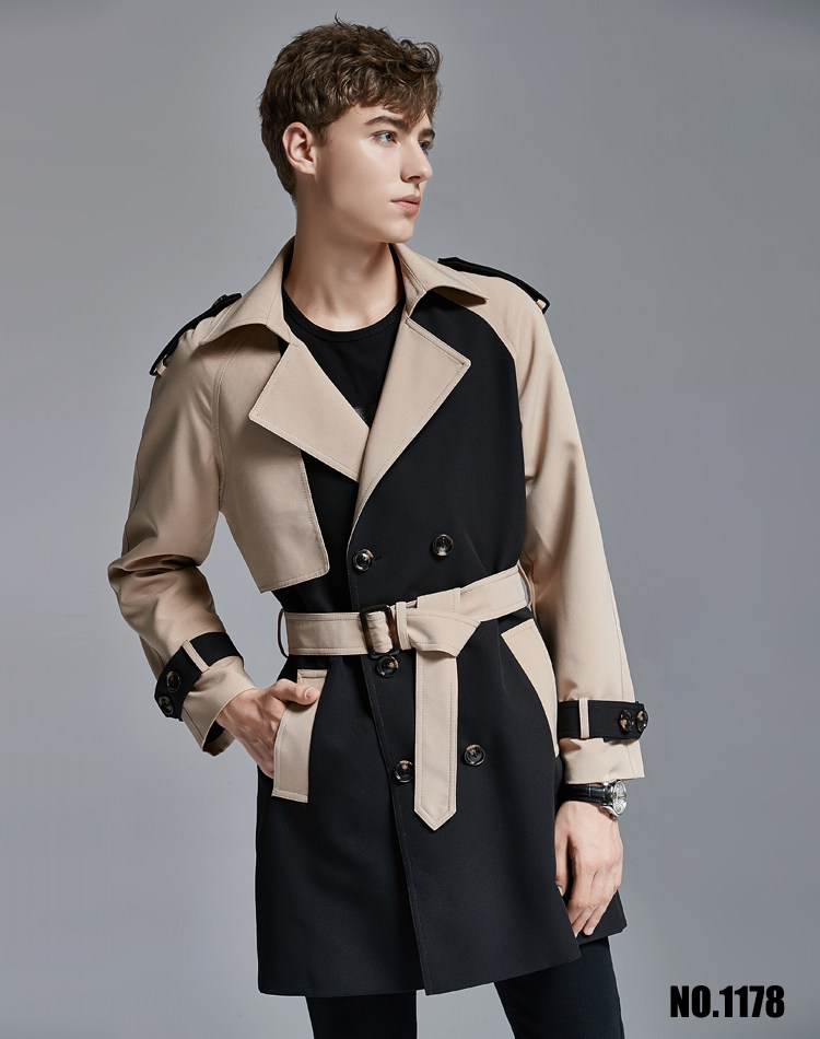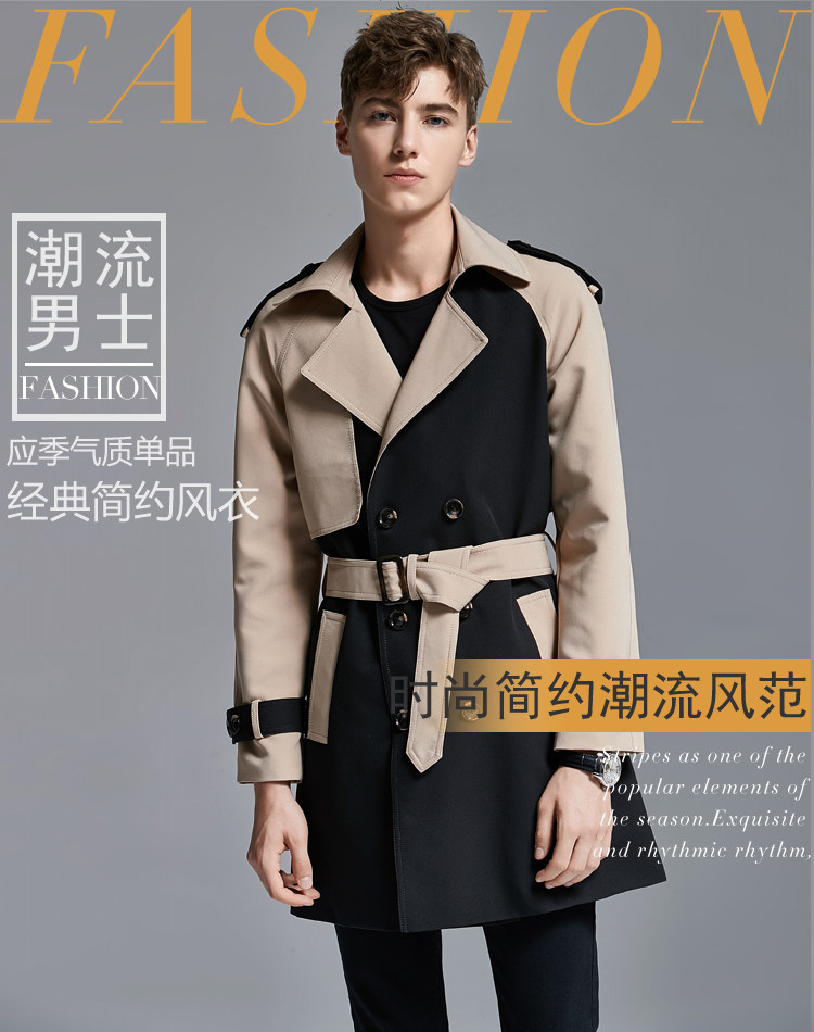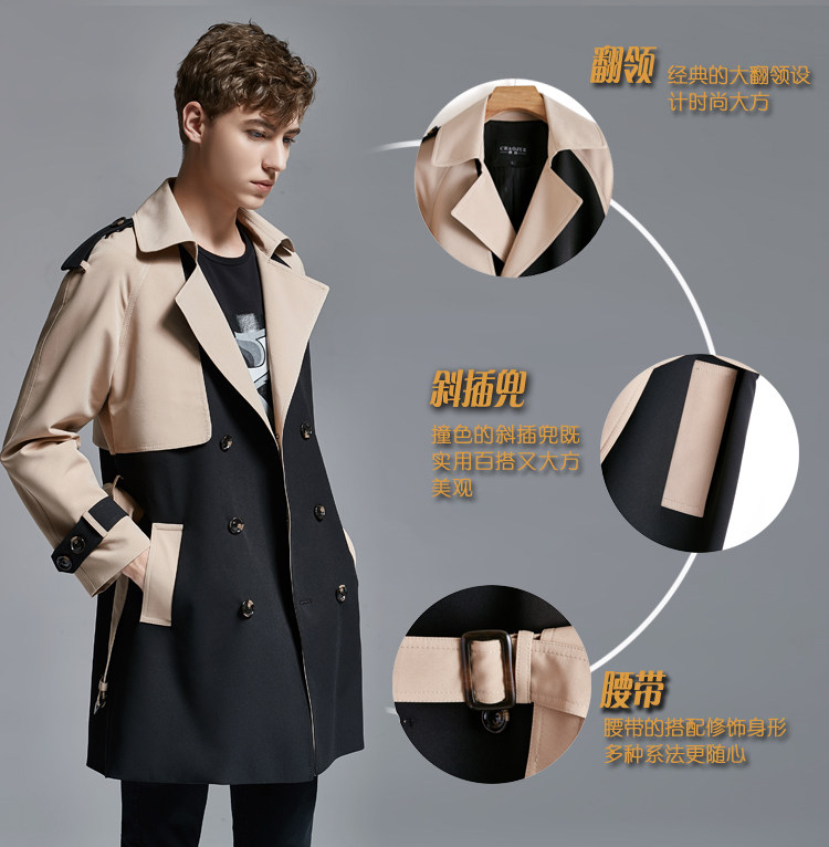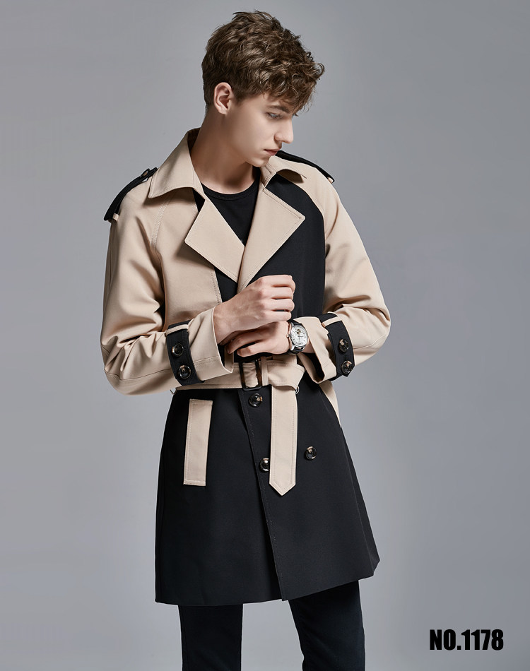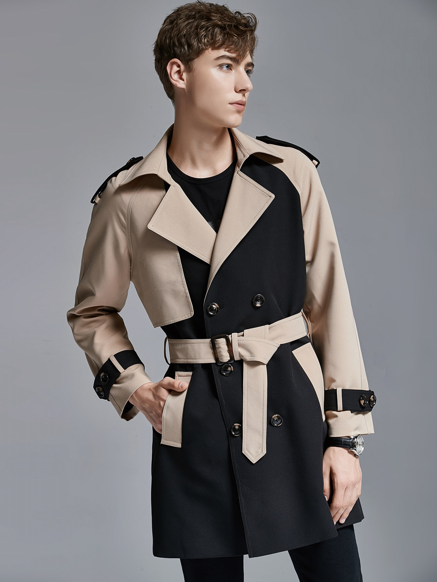 2025 Spring Men's Trench Coat Mid Long Big Collar Fashion Double Breasted Jacket