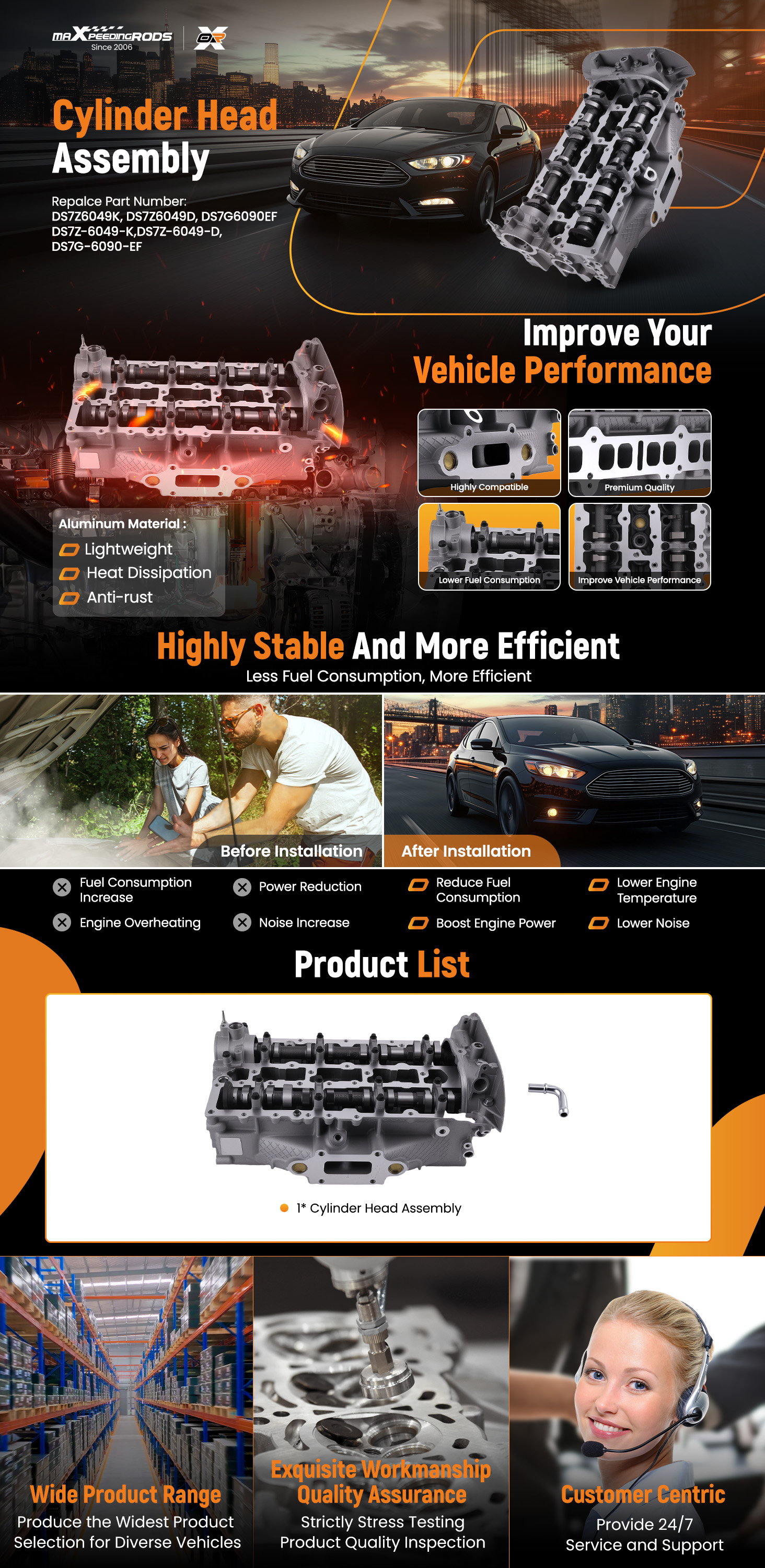 Cylinder Head Assembly for Ford Escape 1.5L Turbo 2017-2019 DS7Z6049K DS7Z6049D