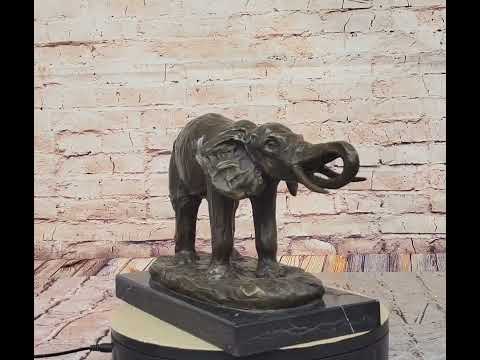 Celebrate the majesty and charm of the elephant with this signed original Milo sculpture. This beautifully crafted piece captures the joy and grace of the elephant, showcasing its powerful form and gentle nature. The hot cast bronze sculpture is finished with a rich brown patina, enhancing its lifelike details and offering a timeless appeal.Handmade using the lost wax method, this sculpture reflects the fine artistry and attention to detail that Milo is renowned for. The piece rests on a classic black marble base, making it a striking addition to any home decor or wildlife collection.This elephant sculpture is perfect for lovers of wildlife art, nature enthusiasts, and collectors of fine bronze pieces. Whether displayed in your living room, office, or study, it will add elegance and a touch of the natural world to your space.