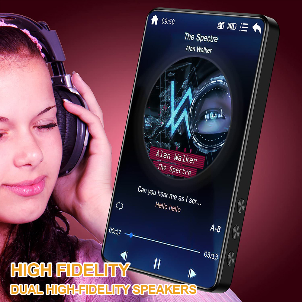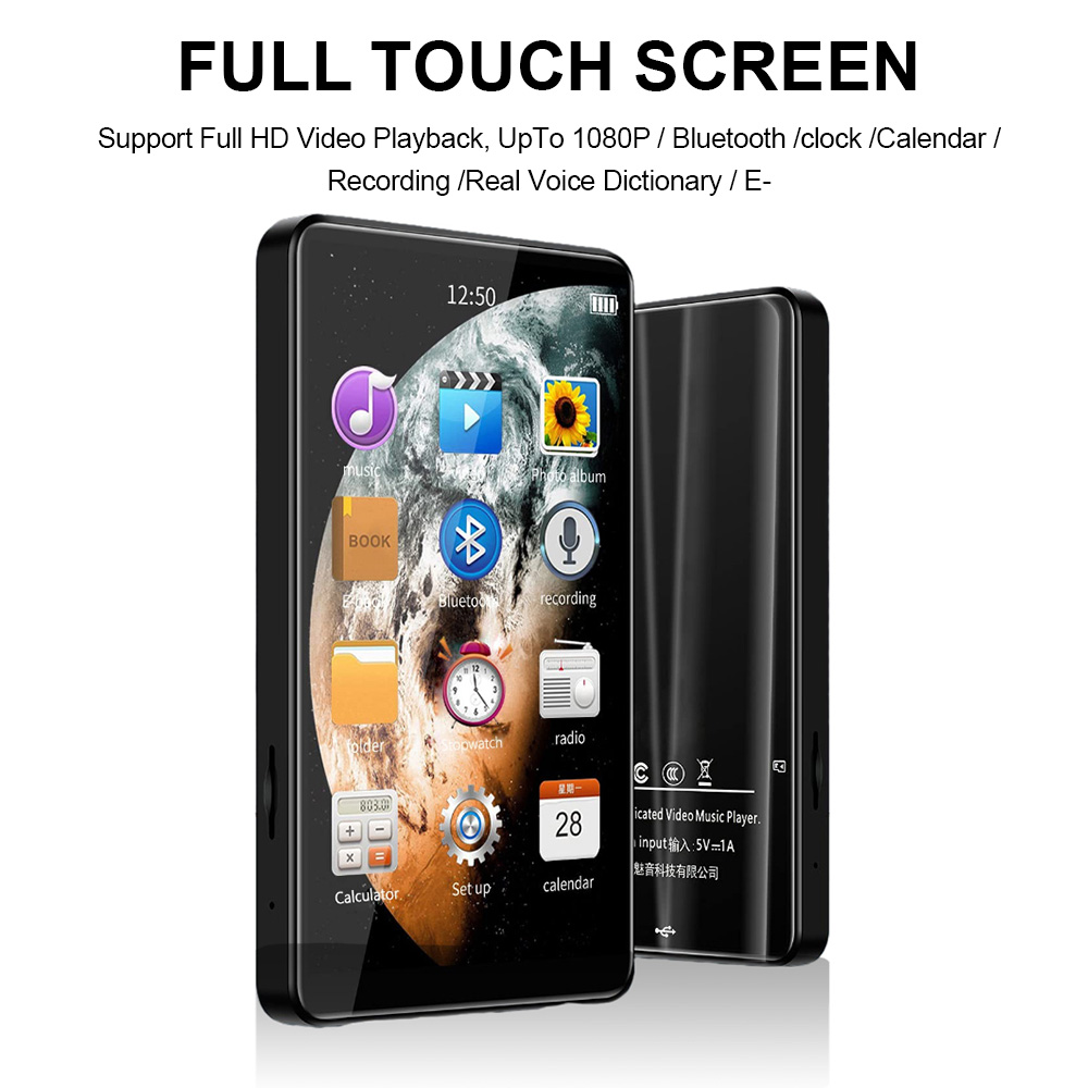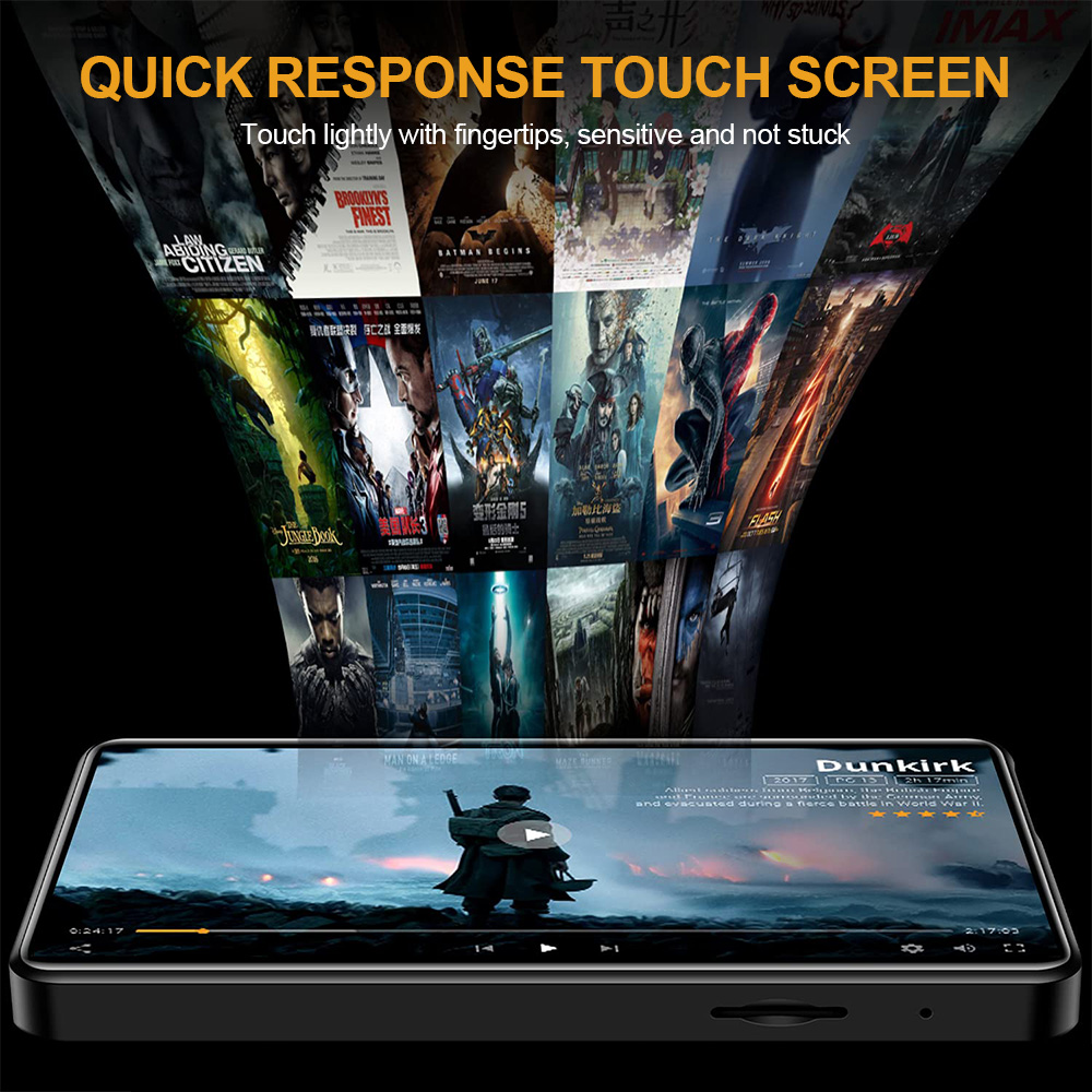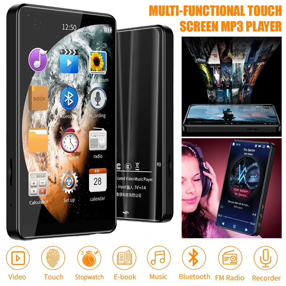 Features: [Touch Full Screen] The 4.0-inch LED backlit wide-screen multi-touch display adopts IPS technology. The full-screen operation is simple, giving you a visual feast and a full touch interactive experience. [1080P Full-format HD] supports high-resolution video and direct playback without conversion, and supports RM, RMVB, AVI, MKV, WMV, VOB, MOV, FLV, ASF, DAT, MP4, 3GP, MPG, MPEG and other 1080P full-format HD video playback. [16GB and up to 256GB] Built-in 16GB memory, supporting TF card up to 256GB (this product is not included in the package). You can download thousands of songs and store a large number of files, supporting music formats such as MP3 WMA APEFAC WAVAAAC-LCACELP. [Excellent Sound Quality] Provides Hifi sound quality close to the original sound, supports most audio formats, and the perfect sound quality makes it a necessary equipment for enthusiastic listeners, making work and life more enjoyable. [Multifunction] Support music playing, video playing, recording, electronic dictionary, text document TXT reading, picture browsing, FM radio, folder function, TF card and setting function. [Fast charging] 1000mAh high-capacity lithium-ion battery and Type-C fast charging technology are adopted, and MP3 player has a type-c charging cable. Newly upgraded Bluetooth 5.0, including high-fidelity lossless audio/video/multimedia playback, built-in speaker /FM radio/recorder and other functions, especially designed for sports, travel, work, etc., suitable for a variety of usage scenarios. Specification: Project type: MP3 player Materials: metals and electronics Screen: 4.0-inch HD screen Resolution: 480*800 Headphone interface: standard 3.5mm round hole. Body storage space: 16GB Memory card slot: supports 32, 64, 128 and 256GB memory expansion (not included). Bluetooth: 5.0 Support: MP3, OGG, APE, FLAC, WMA, WAV, AAC. Photo format: JPEG, BMP, GIF, PNG. Product size: 103*63*10mm E-book: TXT Battery type: built-in 1000mAh lithium-ion battery Additional functions: support for Bluetooth, picture browsing, FM radio, recording, playback and e-book reading. Packing list: 1 * MP3 1* wired headset 1 * Charging cable 1* User Manual