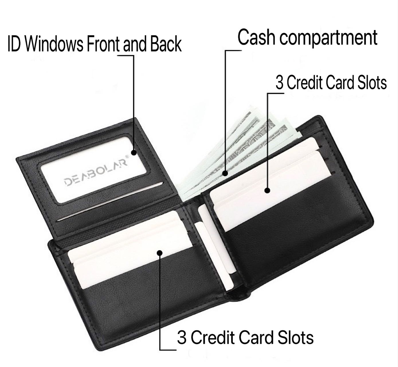 Bifold Design with Ample Storage – Includes multiple card slots, 2 ID windows, and a spacious cash compartment to keep your essentials organized.