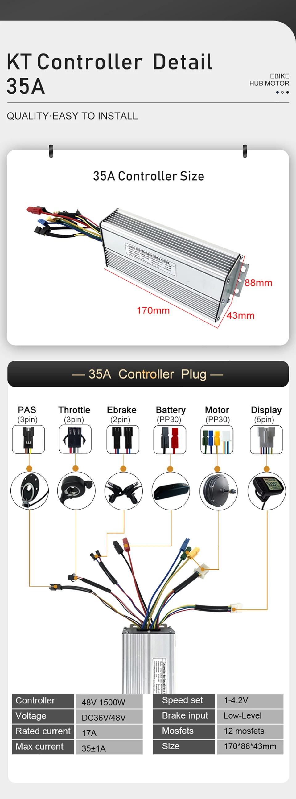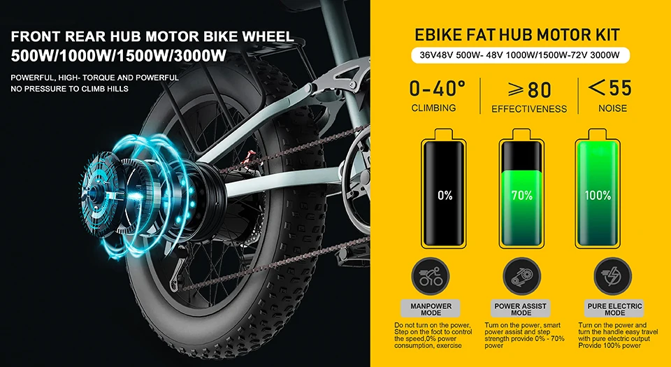 [Powerful]Super high cost performance, speed can reach 50KMH, 414-487RPM, efficiency ≥80%; the brake lever safely cuts off the power of the motor.