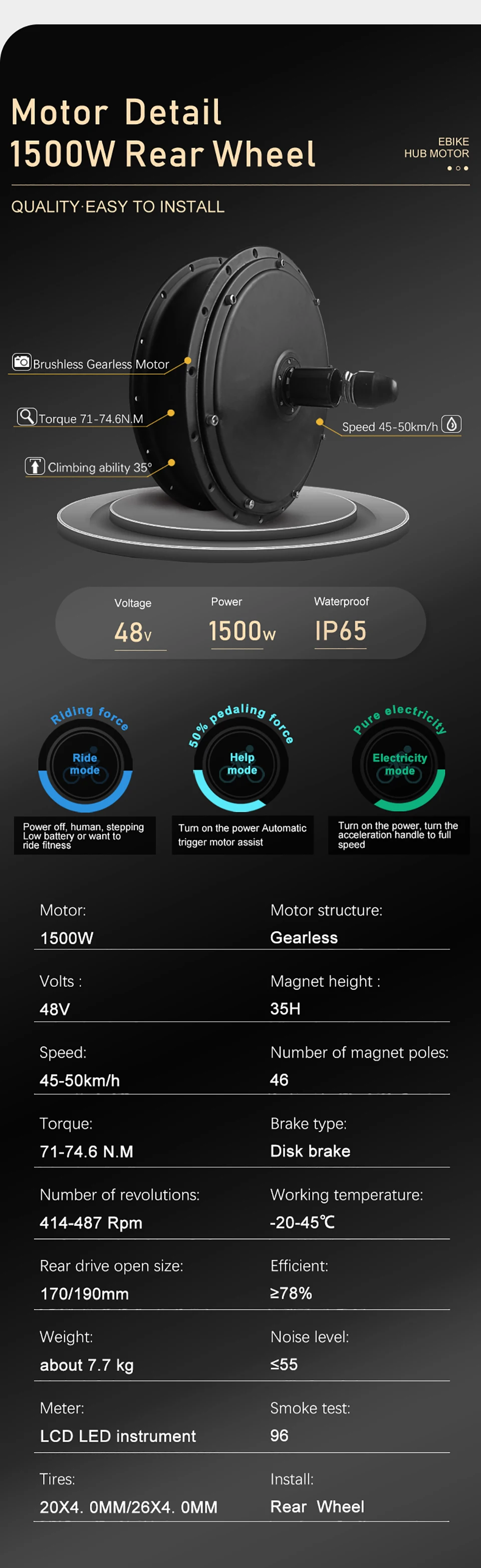 ●1 PCS * 48V 1500W Rear Hub Motor with Rim and Spokes