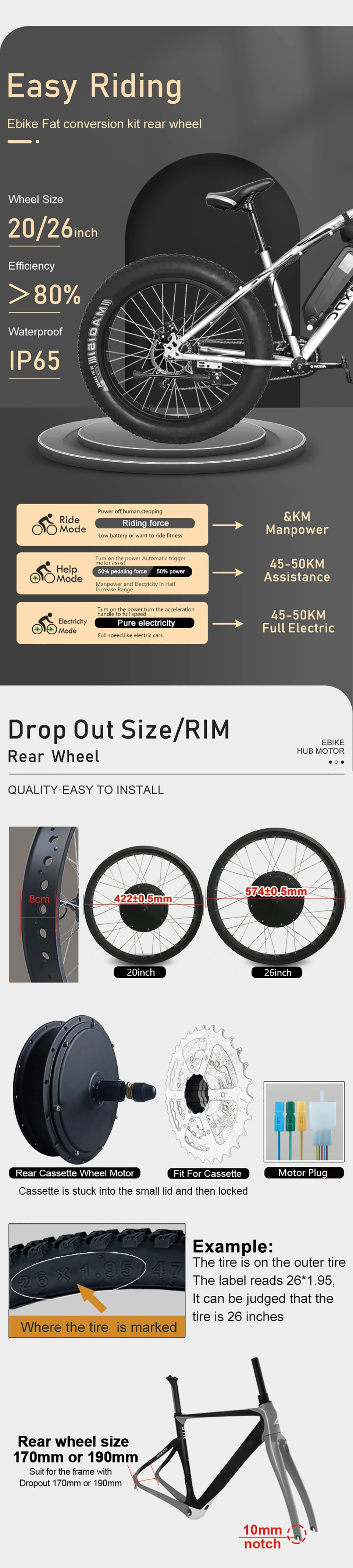 [Simple installation]Easy to convert, DIY rear wheel electric bicycle conversion kit, suitable for bicycles with a rear drop size "170mm/190mm", easily convert your pedal bicycle to motorized bicycle within 1 hour.