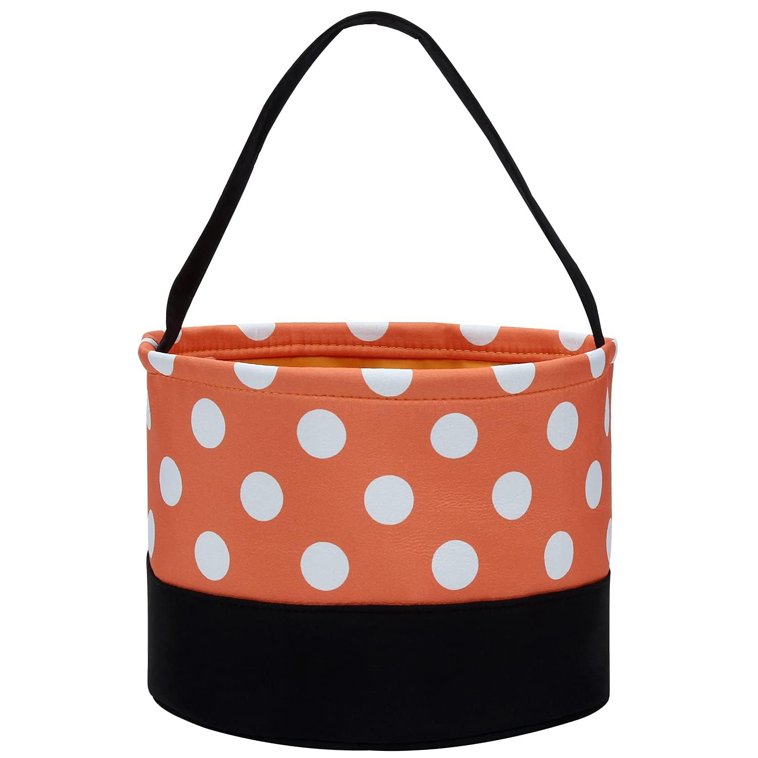 - 2. Classical shape:Adorable white polka dots on an orange background decorate the body of this bag with black handle and bottom. This is just one of our most popular styles. We also have dozens of popular styles. For Halloween, can choose whatever they according to their own preferences.