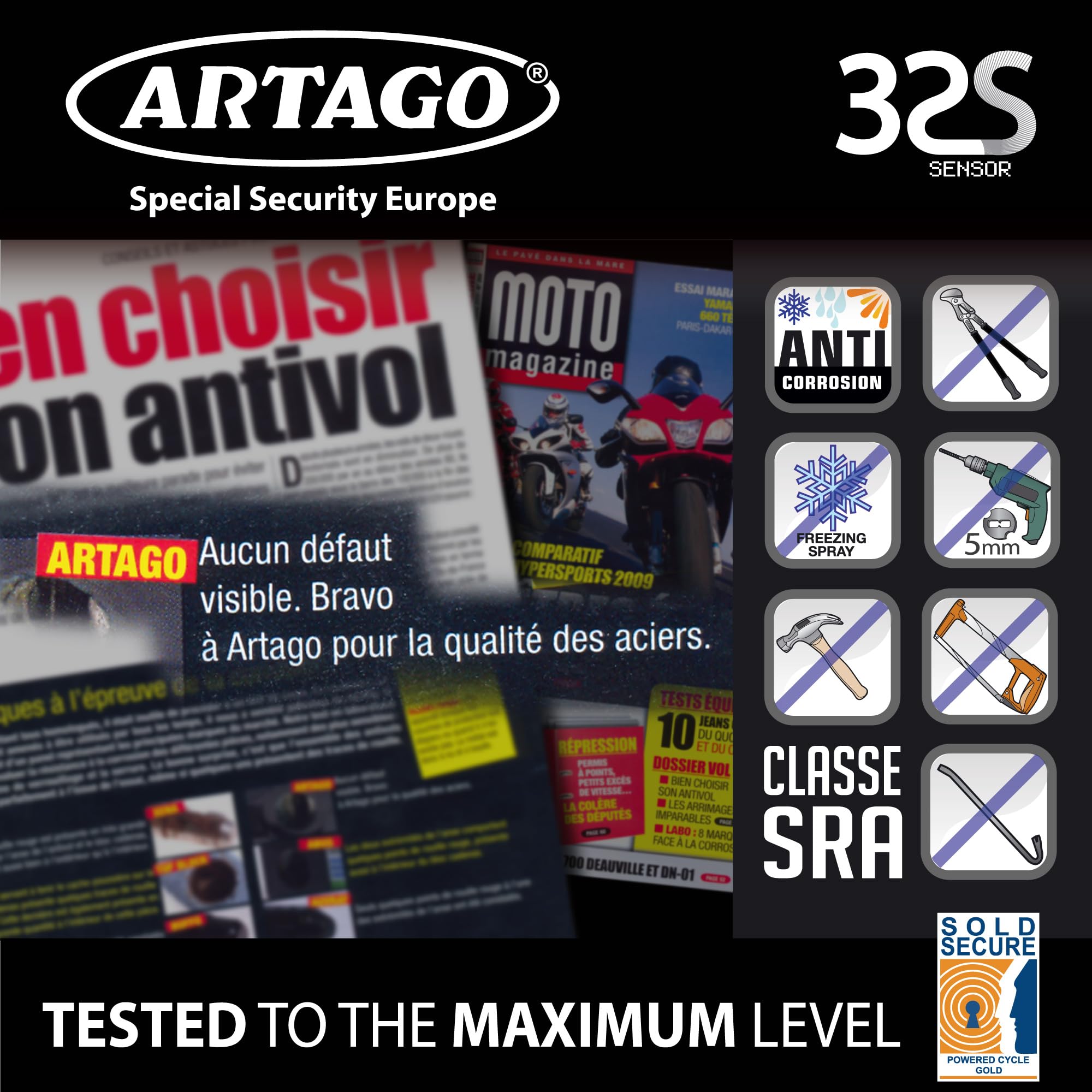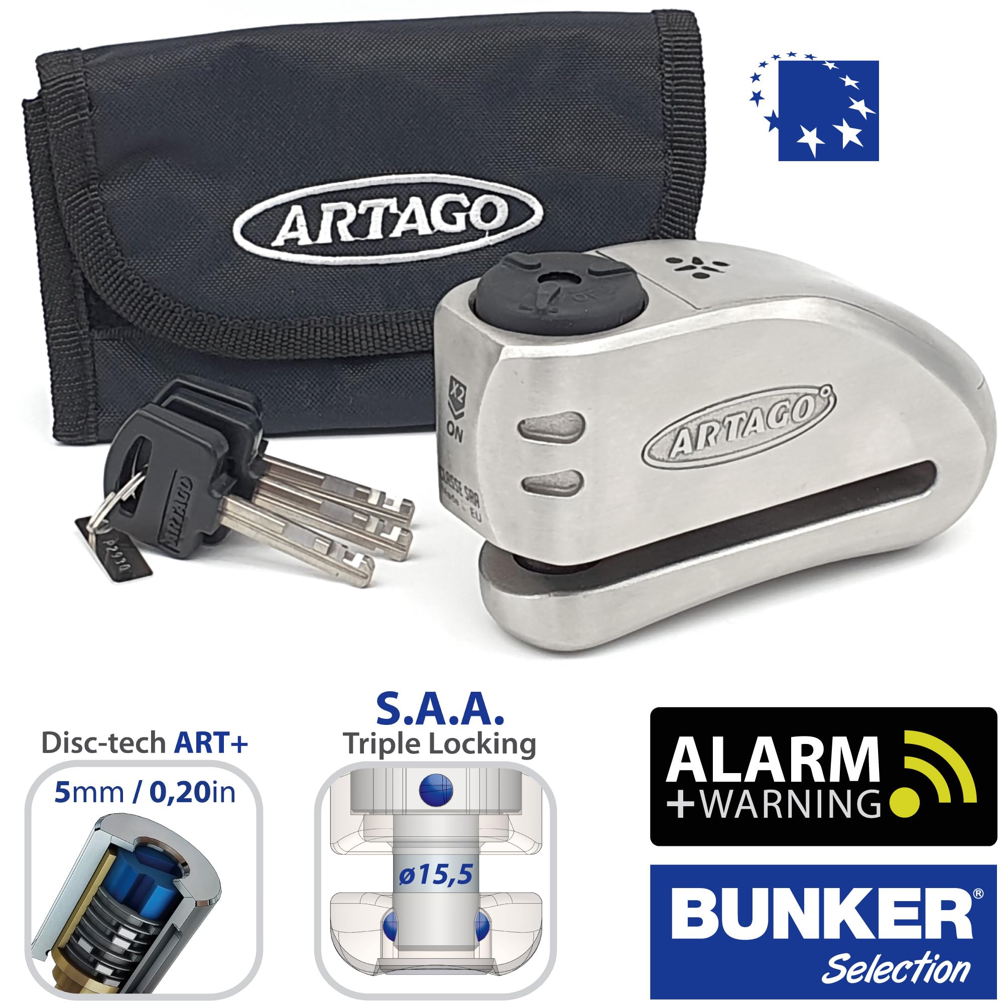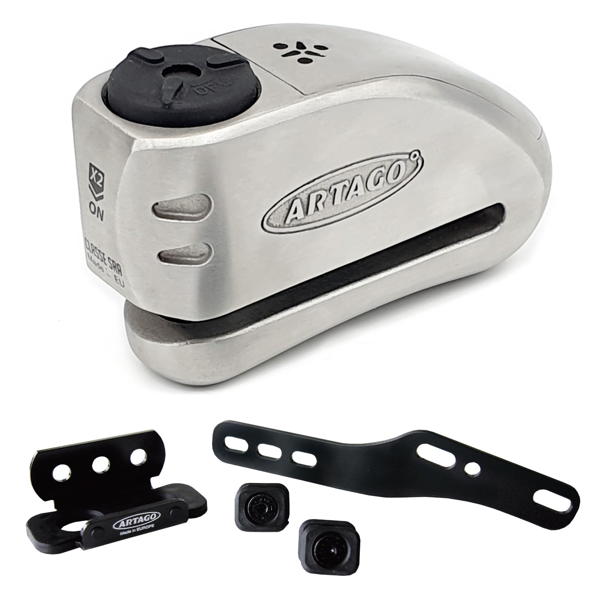 Artago 32S3 Pack Antifurto Bloccadisco con Allarme 120db Alta Sicurezza + Staffa per Kawasaki Z900, Omologato SRA