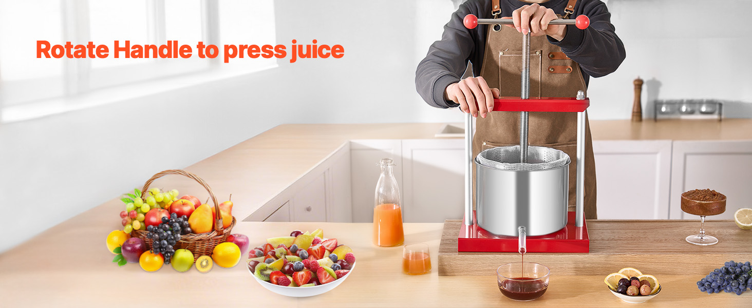 - Easy to Operate: The fruit wine manual press features a T-shaped non-slip handle, simply rotate it downwards to extract juice effortlessly. For better results, you can pre-cut the fruits and place them in a filter bag before pressing