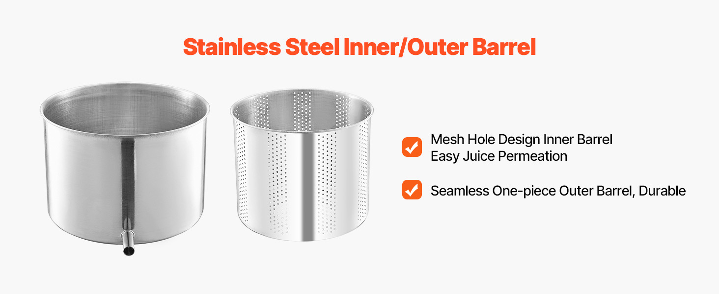 - Easy to Clean: The inner and outer barrels of the fruit and wine press can be disassembled for cleaning. Made of stainless steel, you can easily rinse away food stains, leaving it clean and shiny with minimal effort. You can also place it in the dishwasher for convenient and labor-saving cleaning