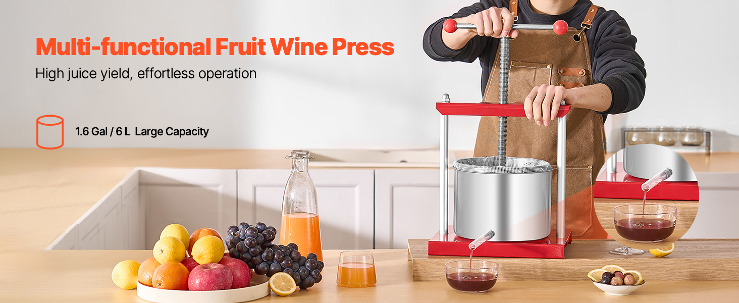 - Large Capacity: The 6L/1.6-gallon large-capacity design is ideal for family gatherings and parties, it provides an abundant supply of juice and can also press wine, cheese, fruit puree, olive oil, honey, and more