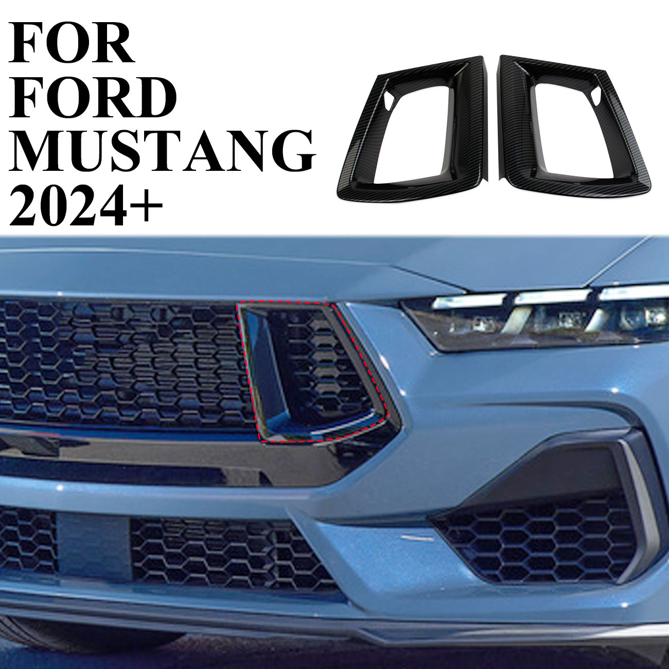 Carbon Fiber style front side bumper grille cover trim Fit For Ford Mustang 2024-2025 decoration Accessories
