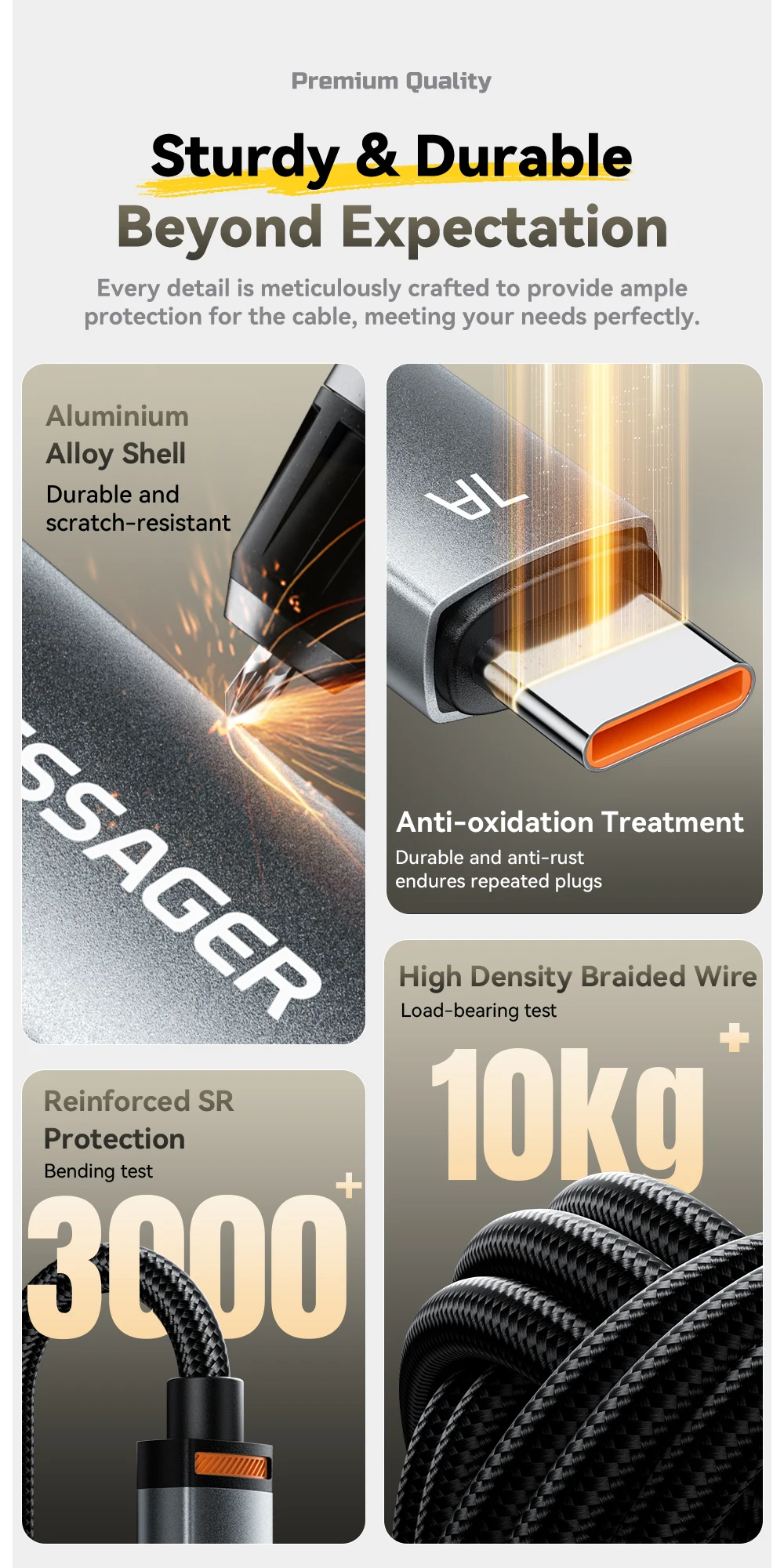 Material: Aluminum alloyIn terface +TPE+PP Yarn 24 Braided