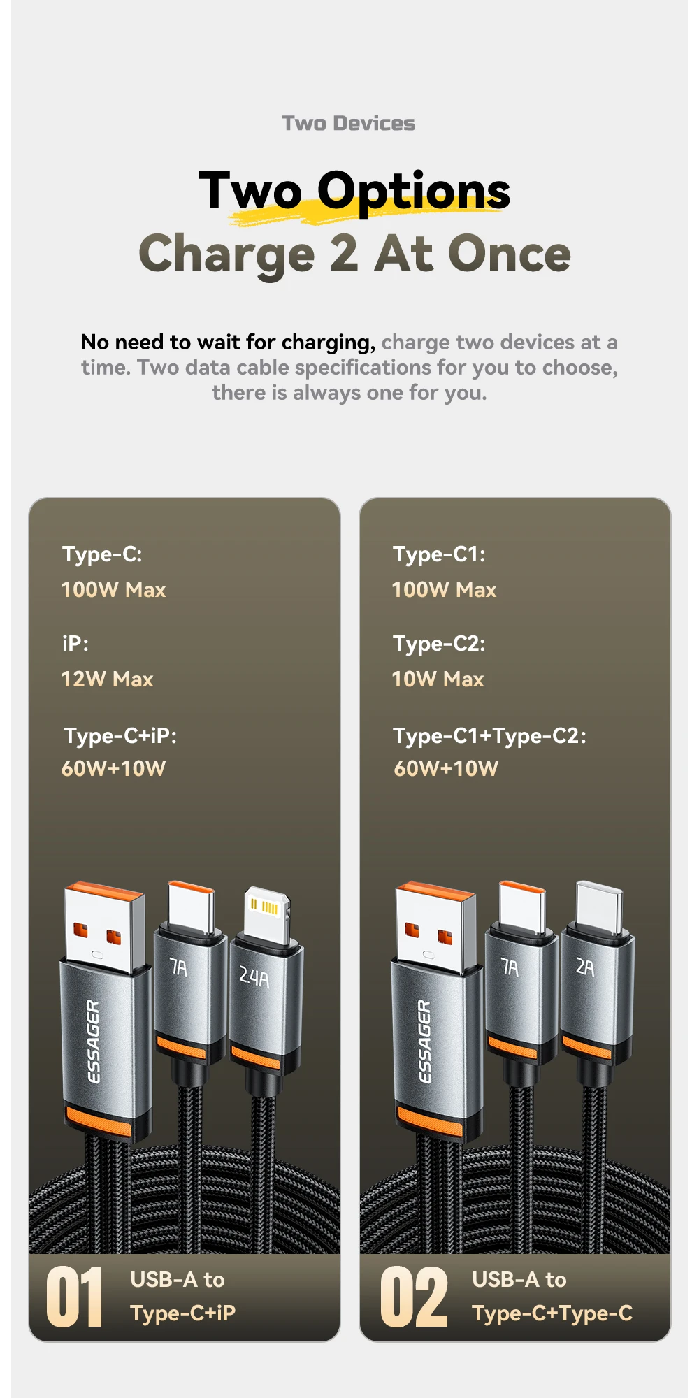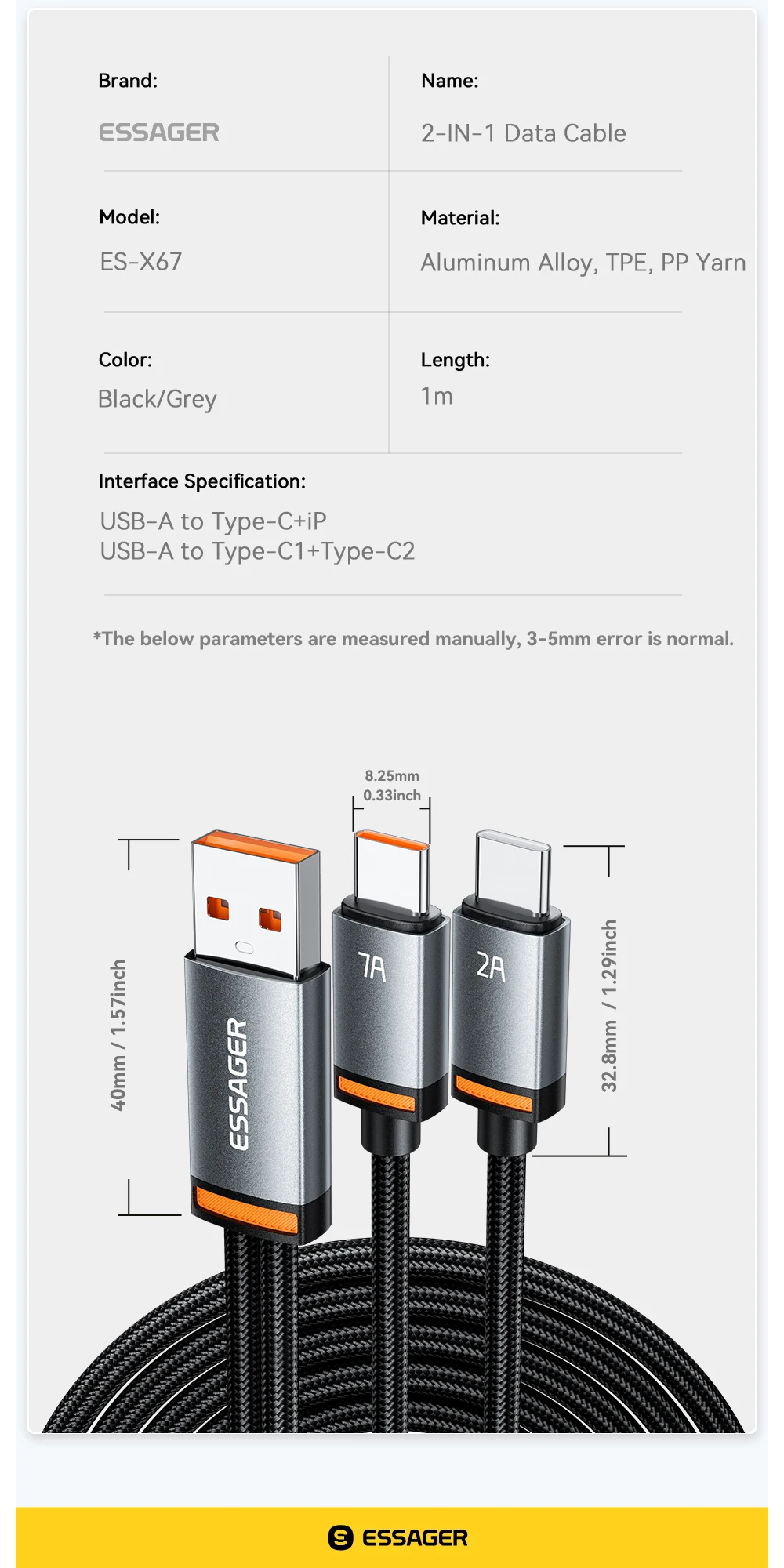 specification: USB-A to Type-C (7A)+Lightning (2.4A)