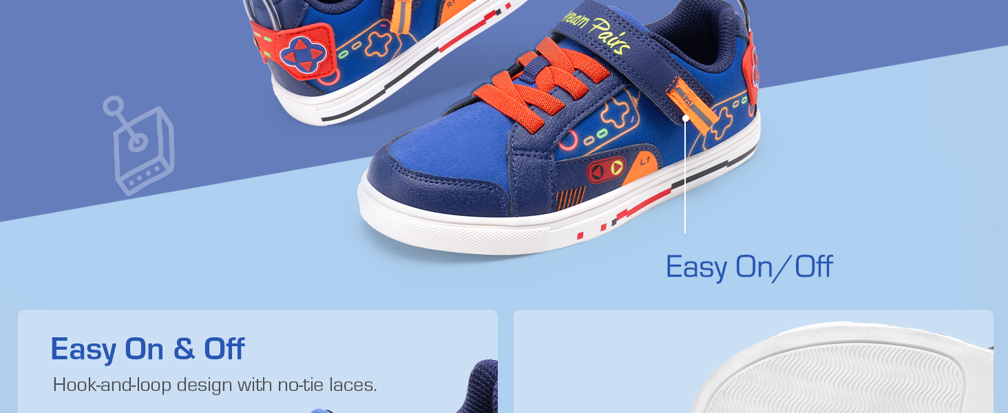 • Easy On & Off: Equipped with a large hook-and-loop fastener and elastic laces, these sneakers are easy for kids to put on and take off independently.