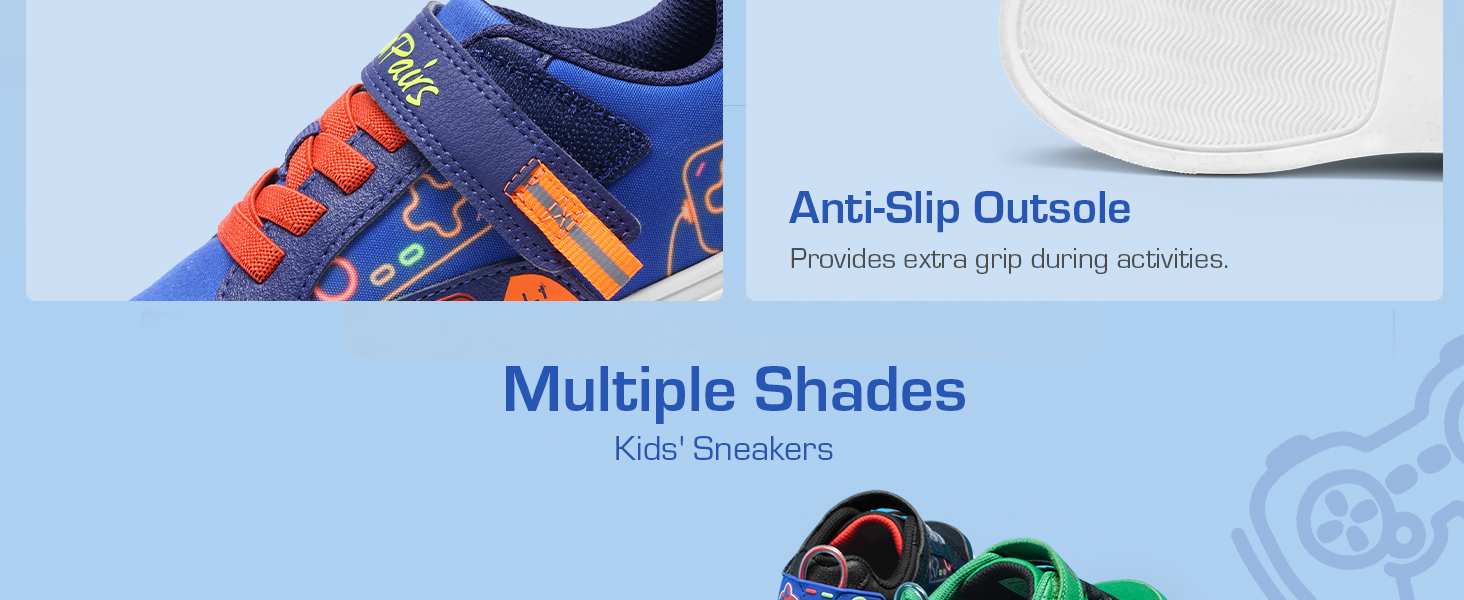 • Stable Protection: The TPR outsole with anti-slip patterns offers extra safety, providing a firm grip on the ground whether kids are running or jumping.