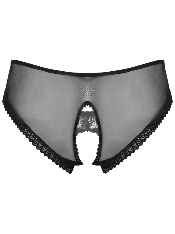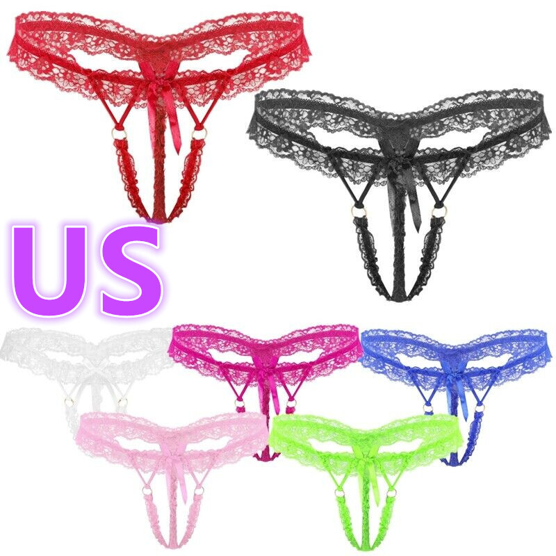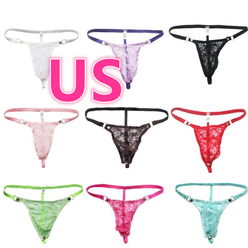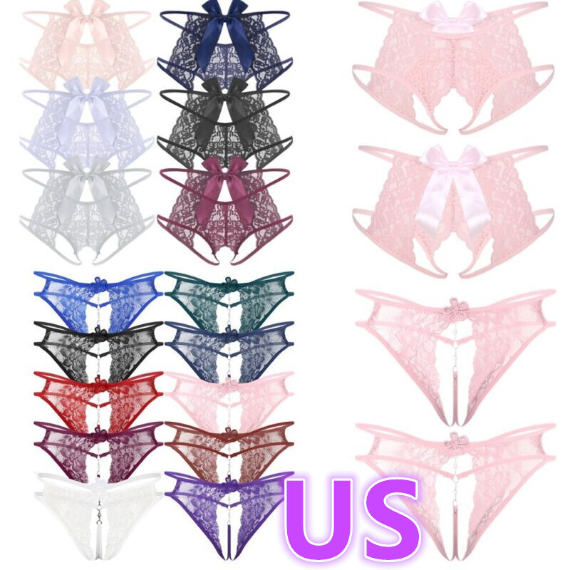 Mens See-Through Lace Briefs Bowknot Strappy Crotchless Underpants.