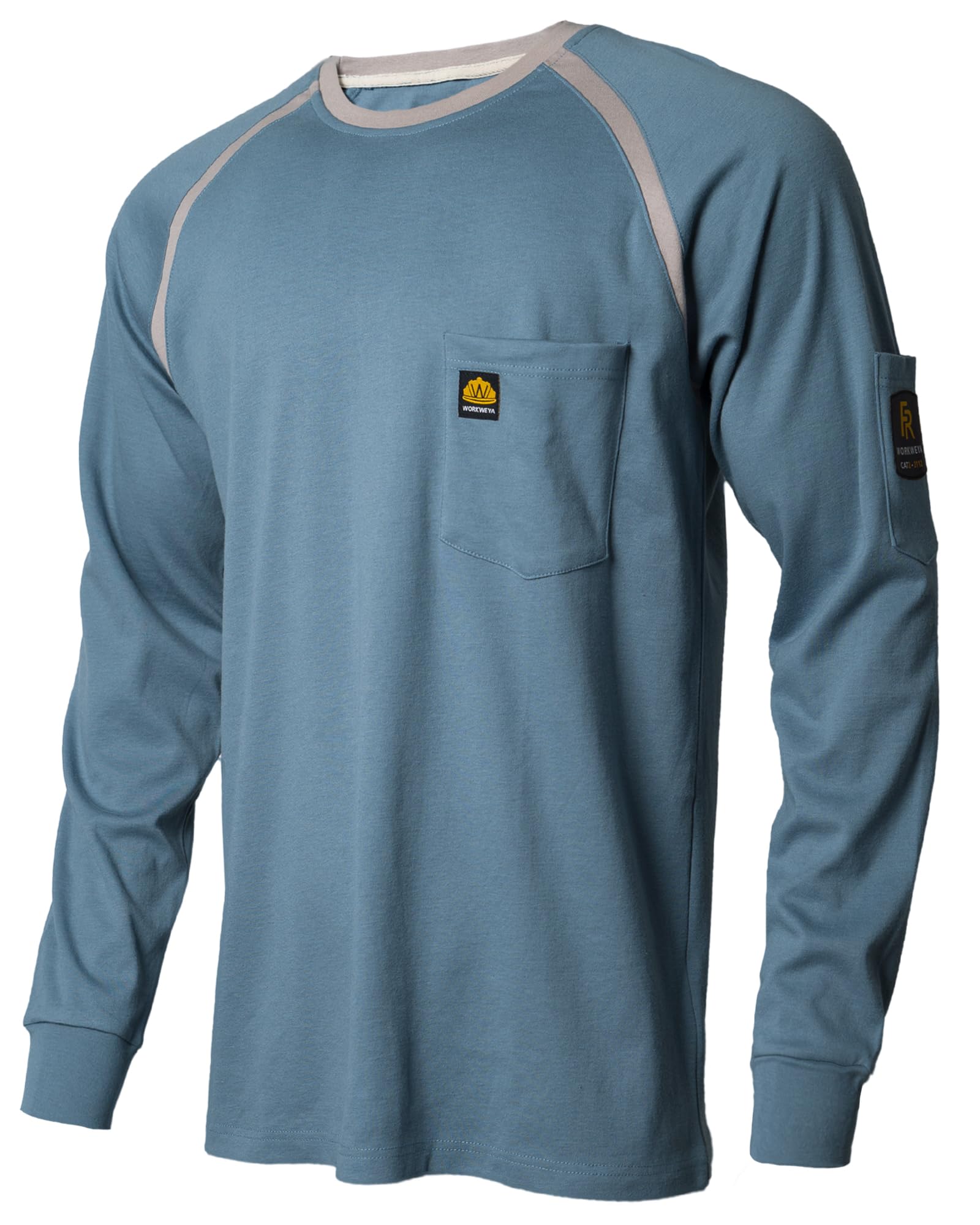 - 【STYLISH DESIGN】: Long sleeve FR shirt is made up of knit cotton, rib-knit collar and cuffs, and a left chest pocket. It looks and feels your favorite t-shirt. We attched a small sample for simple FR try.