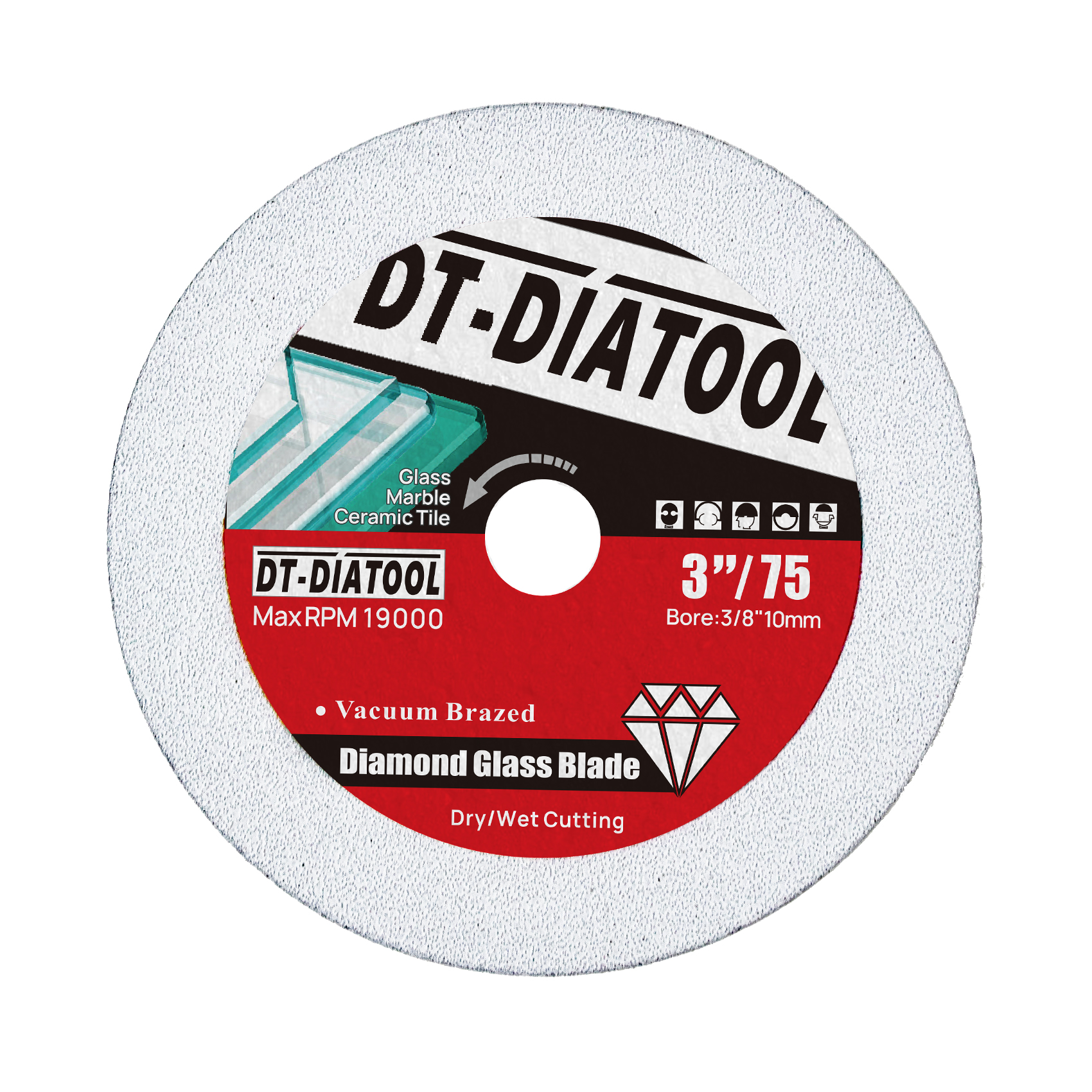 Item: Dt-Diatool Dia 75mm Diamond Glass Cutting Disc Quantity: 1pc Grit #100/120 Specification: Diameter 3"/75mm:Segment thickness 1.3mm, Segment Height: 10mm; bore 10mm; Application: For smooth cutting and grinding of glass, marble, tiles, jade, crystal, wine bottles and other materials. Feature: 1、【Materials of high quality】The saw blade is made of high quality diamond and steel matrix, new upgraded vacuum brazing technology, longer service life, high temperature resistance and low noise; 2、【Quality and Durability】Can achieve long time cutting, more durable and cost-effective; 3、【Precise Chipless Cutting】Ultra-thin saw blade, fast and straight cutting, even grinding force, can achieve precise, chipless cutting;