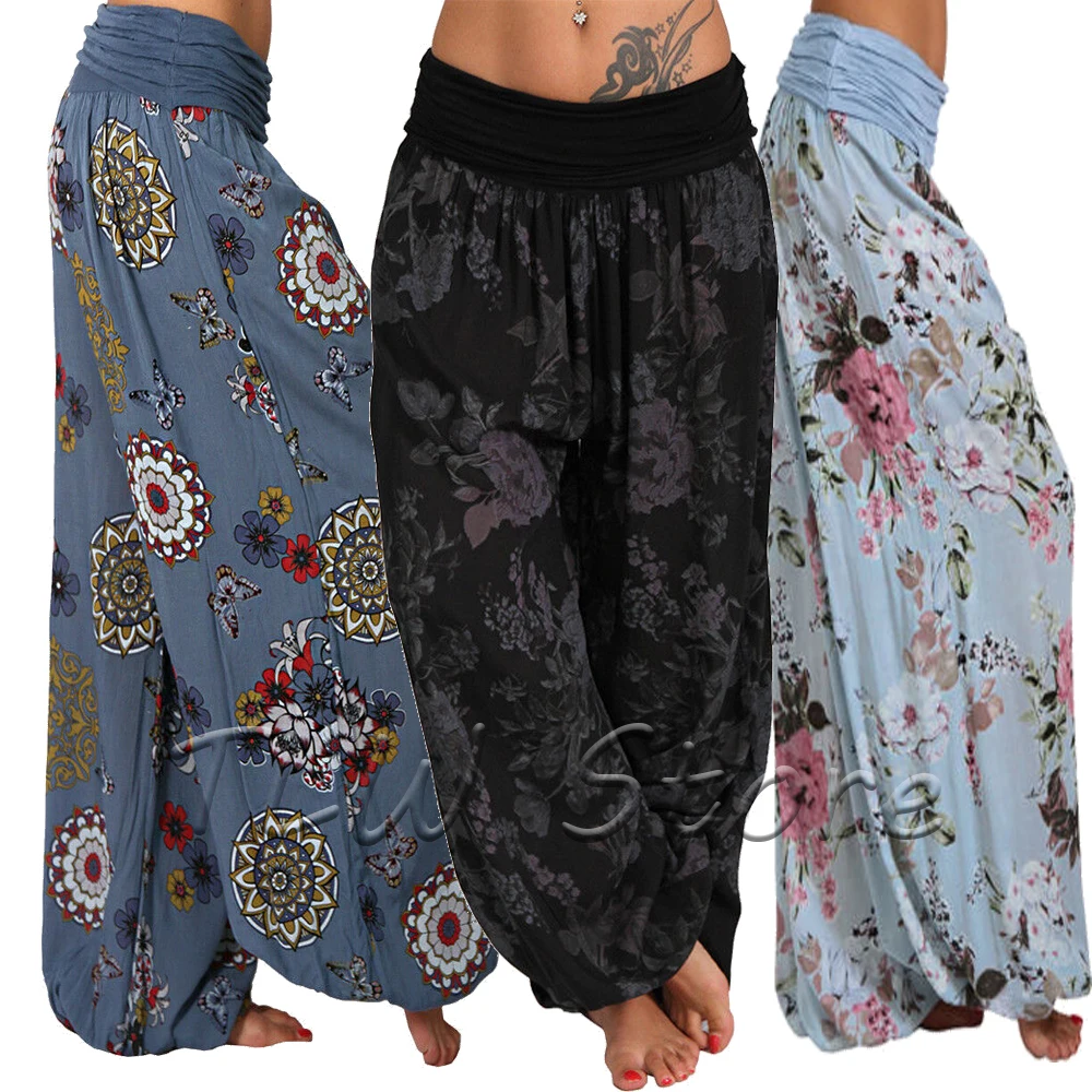 Plus size women Halloween Medieval Renaissance Pirate Horseman Cosplay Costume Viking Hip Hop Boho printed Trouser harem Pants