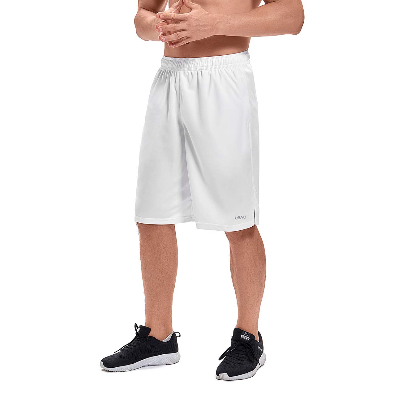 Men's Mesh Basketball Shorts with Zipper Pockets Quick Dry Loose-Sports Workout Running Shorts White XL