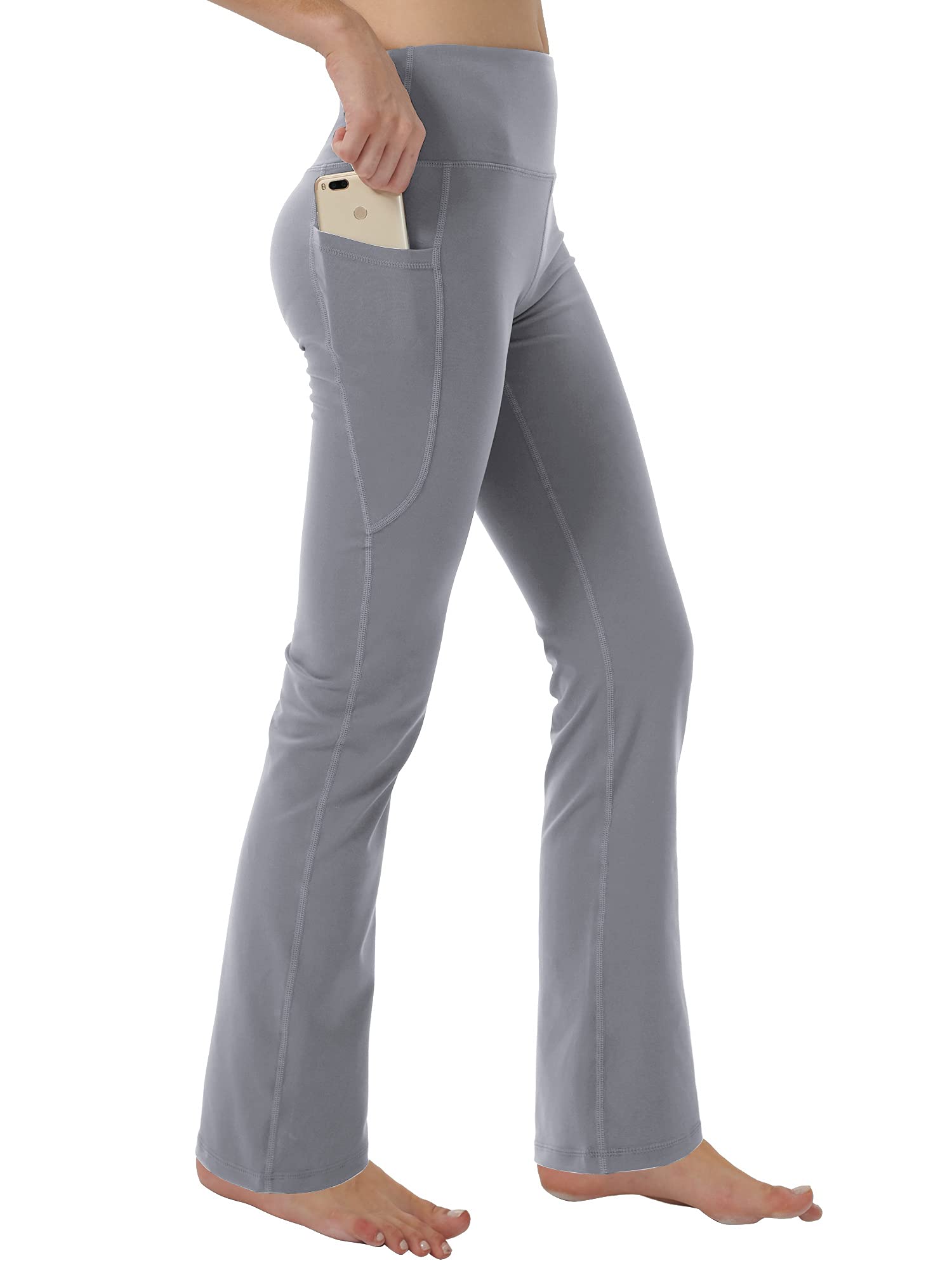 Women's Bootleg Yoga Pants with Hidden Pockets Tummy Control Running Legging Long Bootcut(LightGrey, XX-Large)