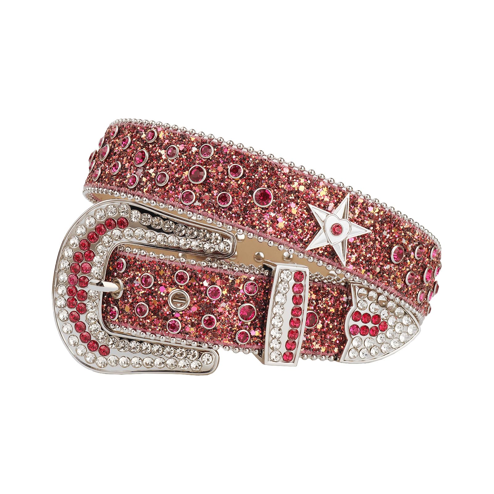 - Men Women Western Belt : Bling Bling Belt is made of high-quality shiny PU leather, and the entire belt is dotted with bright rhinestones. The edge of the belt is carefully sealed, and small beads on the strap edge perfectly complete the beauty of this bling studded belt.