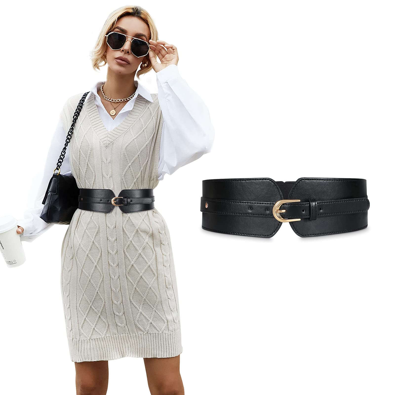 - 【Fashionable and Modern 】: This wide female belt will add charm and fashion to any clothing. These retro belts beautifully shape your torso, and each design can your waist and highlight the silhouette. The waist belt is made of a strong elastic band to prevent the waist belt from curling and has a beautiful buckle design.