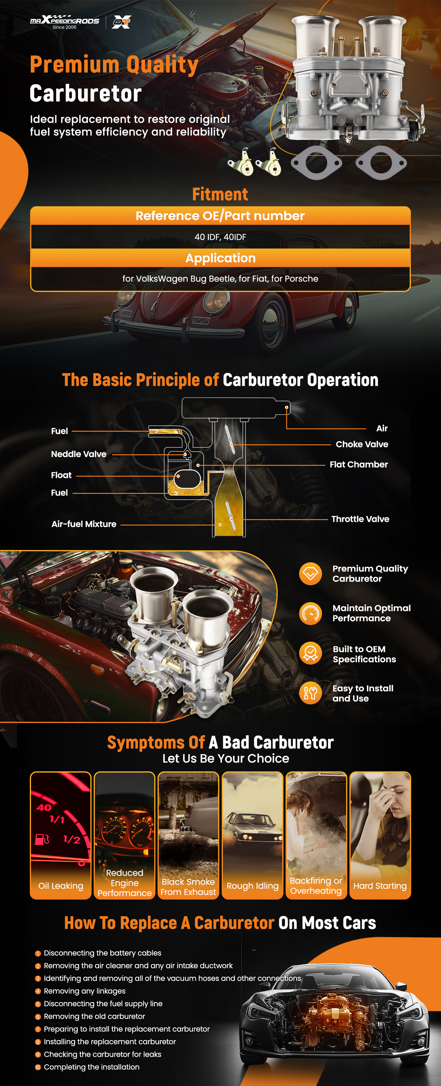 4.Low fuel consumption, Start fast stable idle speed, Heavy Duty Metal Construction