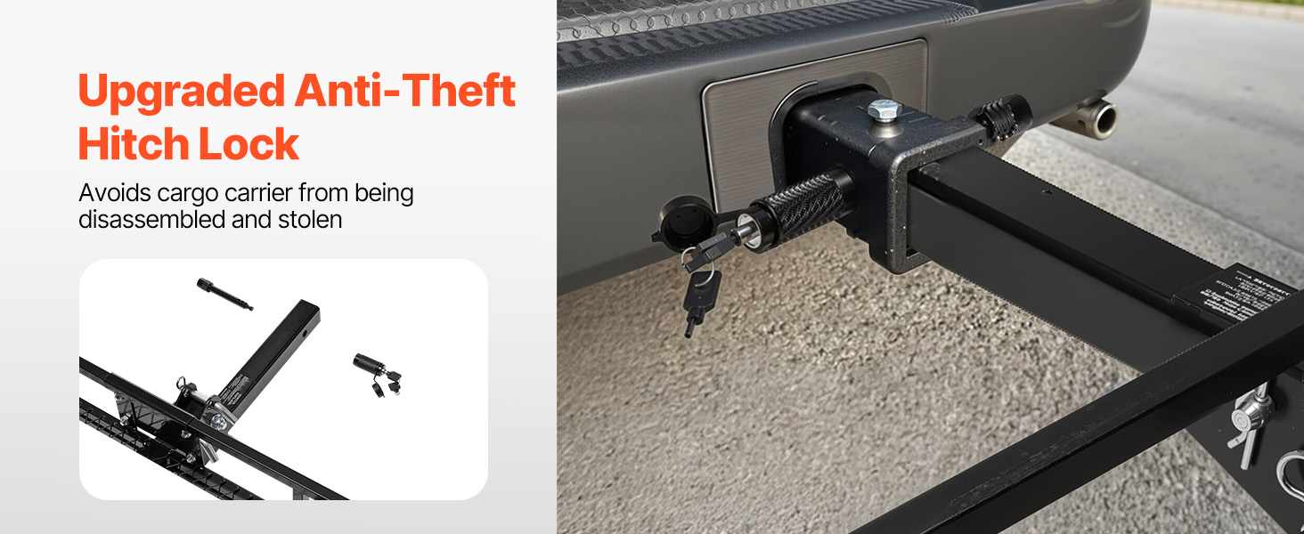- Upgraded Hook-Up Lock: The KFFKFF hitch cargo carrier features a hook-up lock that securely fastens the luggage frame to the car's hook-up interface. This design makes it difficult for thieves to steal the carrier through complete disassembly.