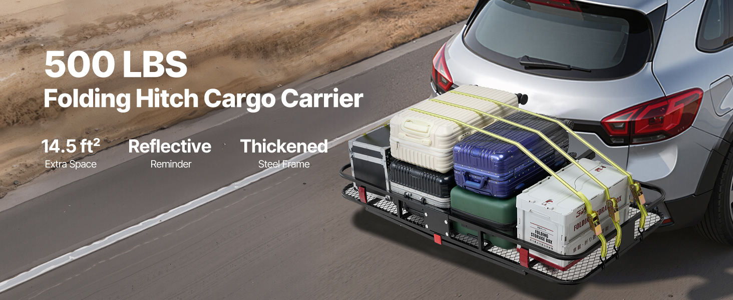 Our hitch cargo carrier offers extra-large storage without taking up space in your car and can hold up to 500lbs. Made of heavy-duty steel, the hitch stabilizer enhances stability, avoiding jiggle or deformation while driving, so you can transport your items with confidence.