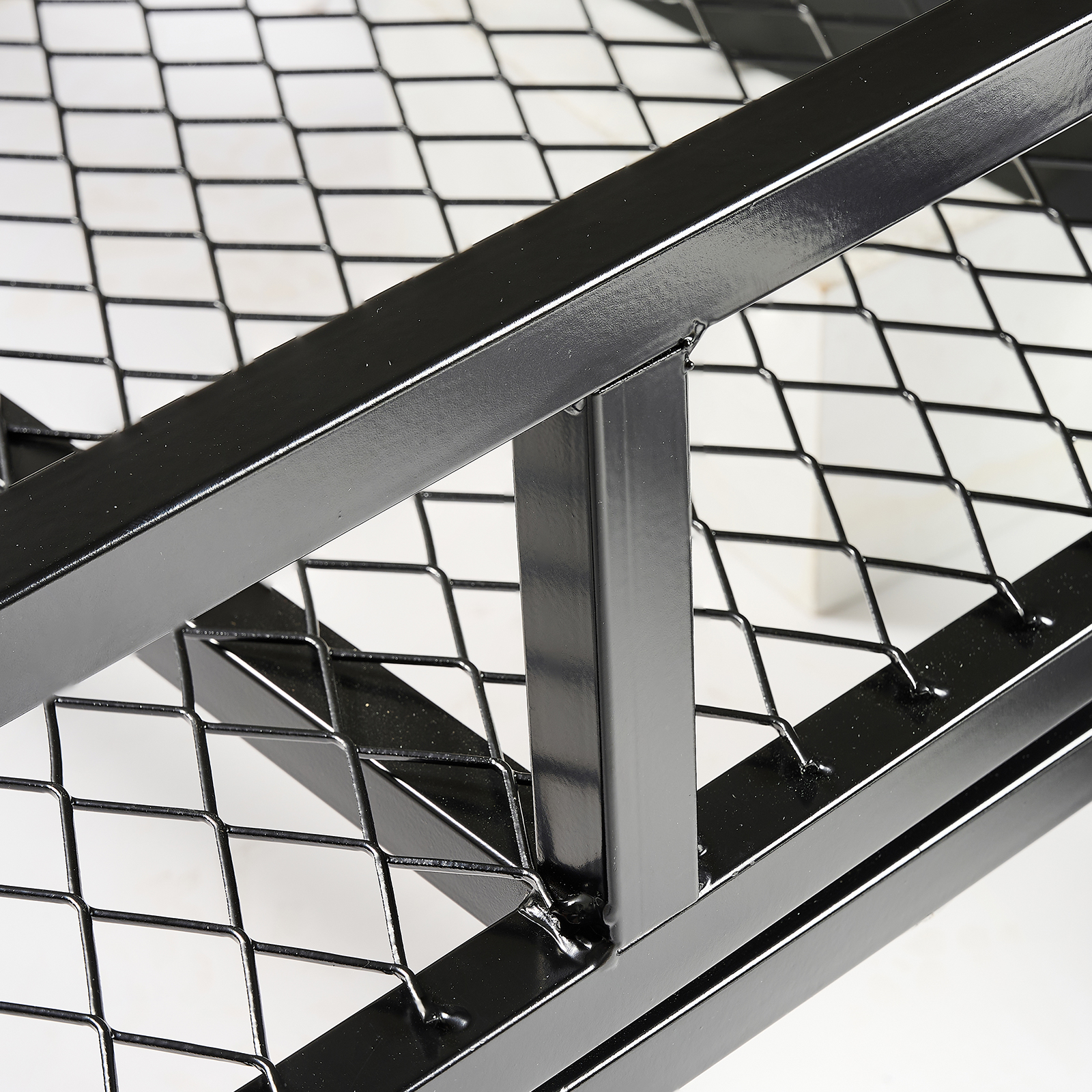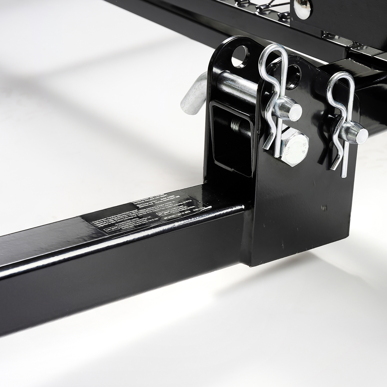 - Foldable Design: When not in use, the KFFKFF hitch cargo carrier can be conveniently folded by adjusting the pins and latches to a 90° angle. This eliminates the need for repetitive disassembly and ensures it takes up minimal space.