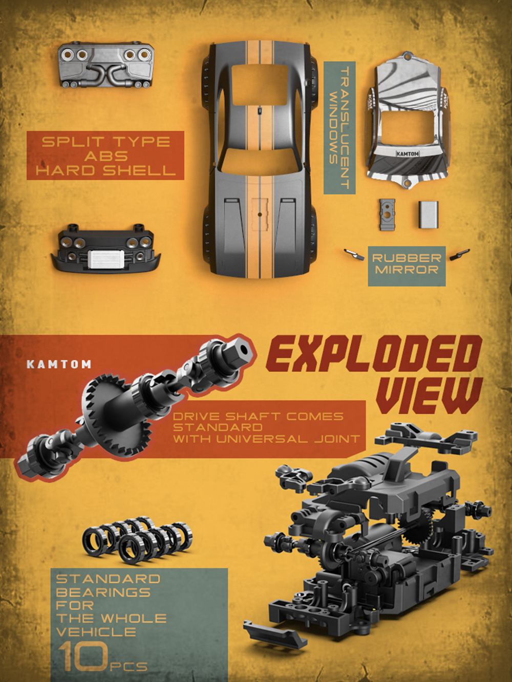 9. ABS hard car shell (paint + pad printing) + translucent windows + soft plastic mirrors