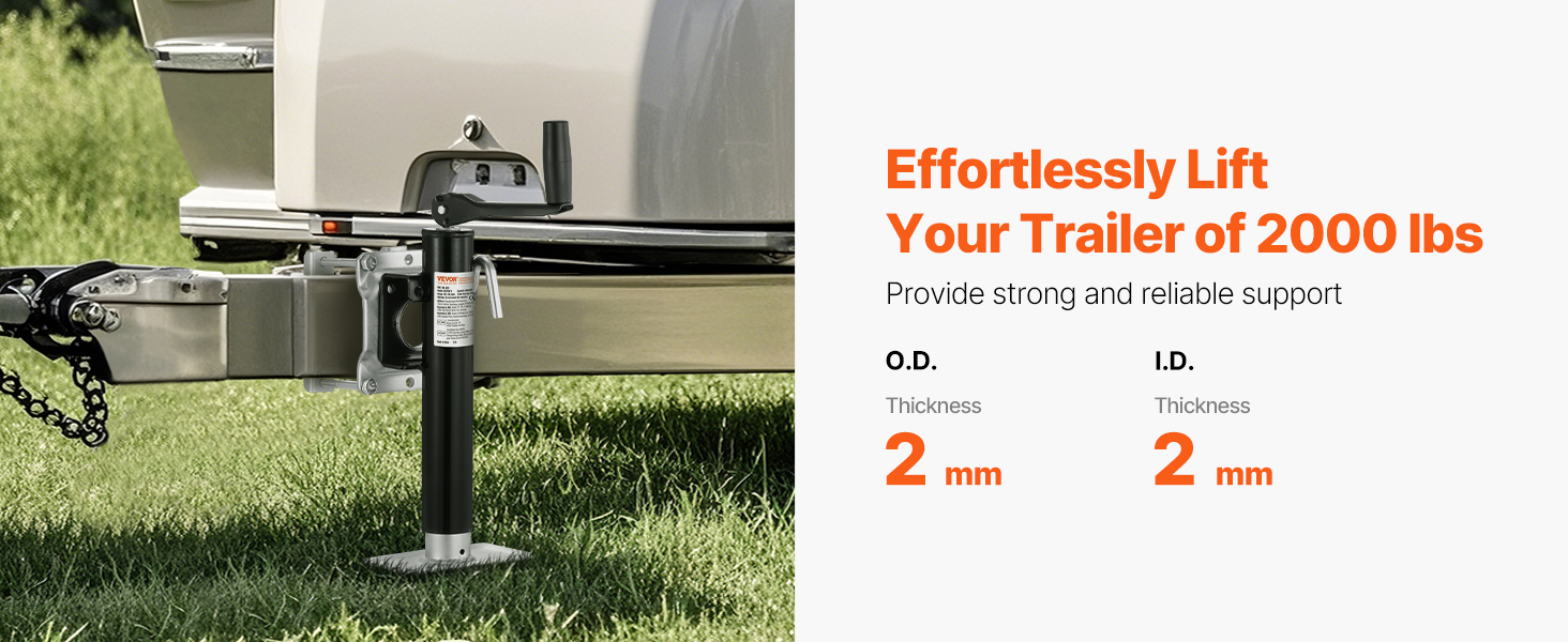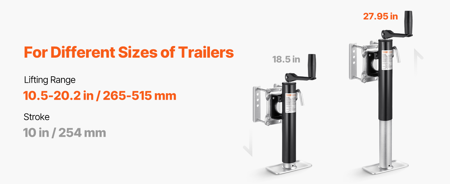 Flexible Compatibility: Designed with a wide lifting range, our utility trailer jack works for all kinds of trailers, big or small, high or low. It's built for flexible, everyday use to make your life easier.