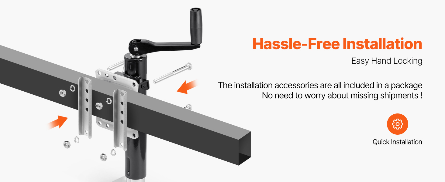Provide all necessary accessories for installation! Installation is quick and simple. You can have the trailer tongue jack up and running in no time.