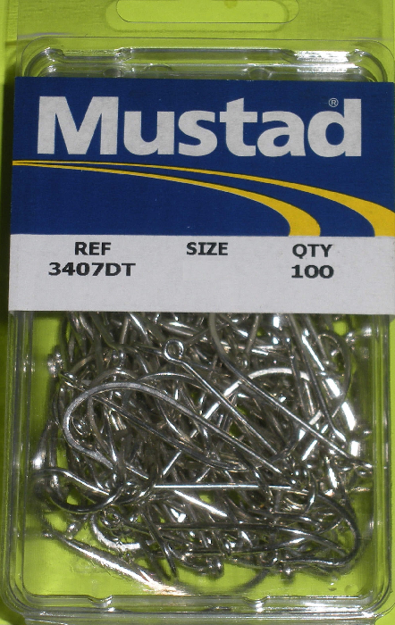 Mustad 3407DT #5/0 Tinned, Forged, Ringed Package of 100 hooks Mustad hooks are made from forged high-carbon steel and tempered to achieve maximum strength Duratin coating resists corrosion. |