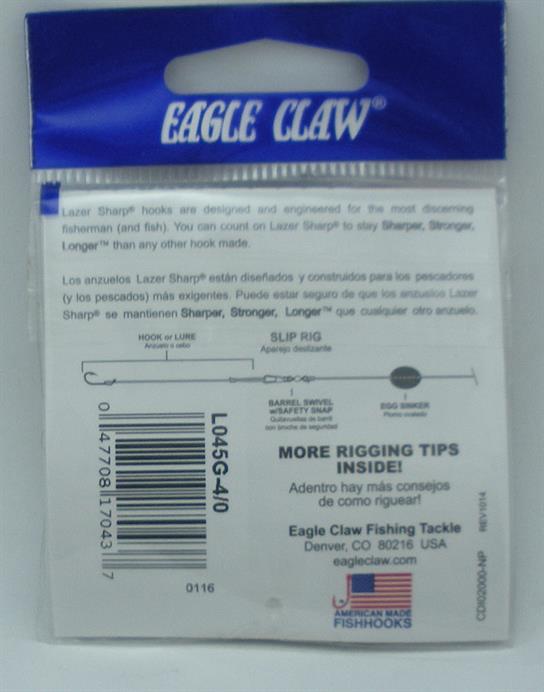 Eagle Claw L045GH-4/0 Lazer Sharp L45 Automatic Rotational Worm Hooks 8CT New in Package
