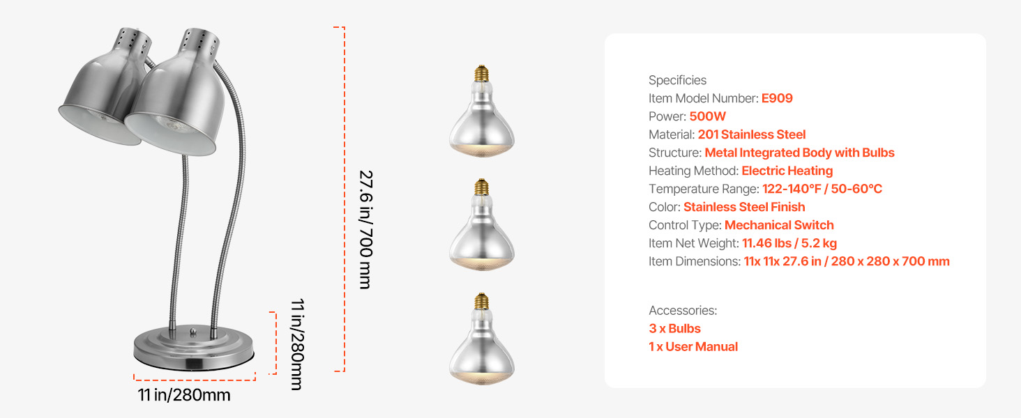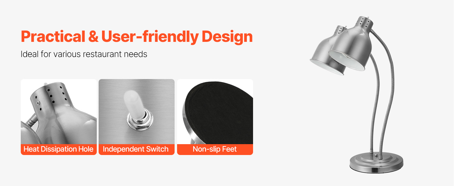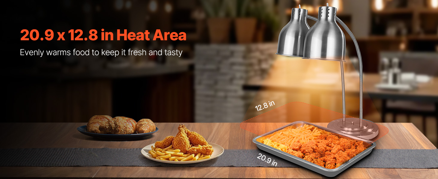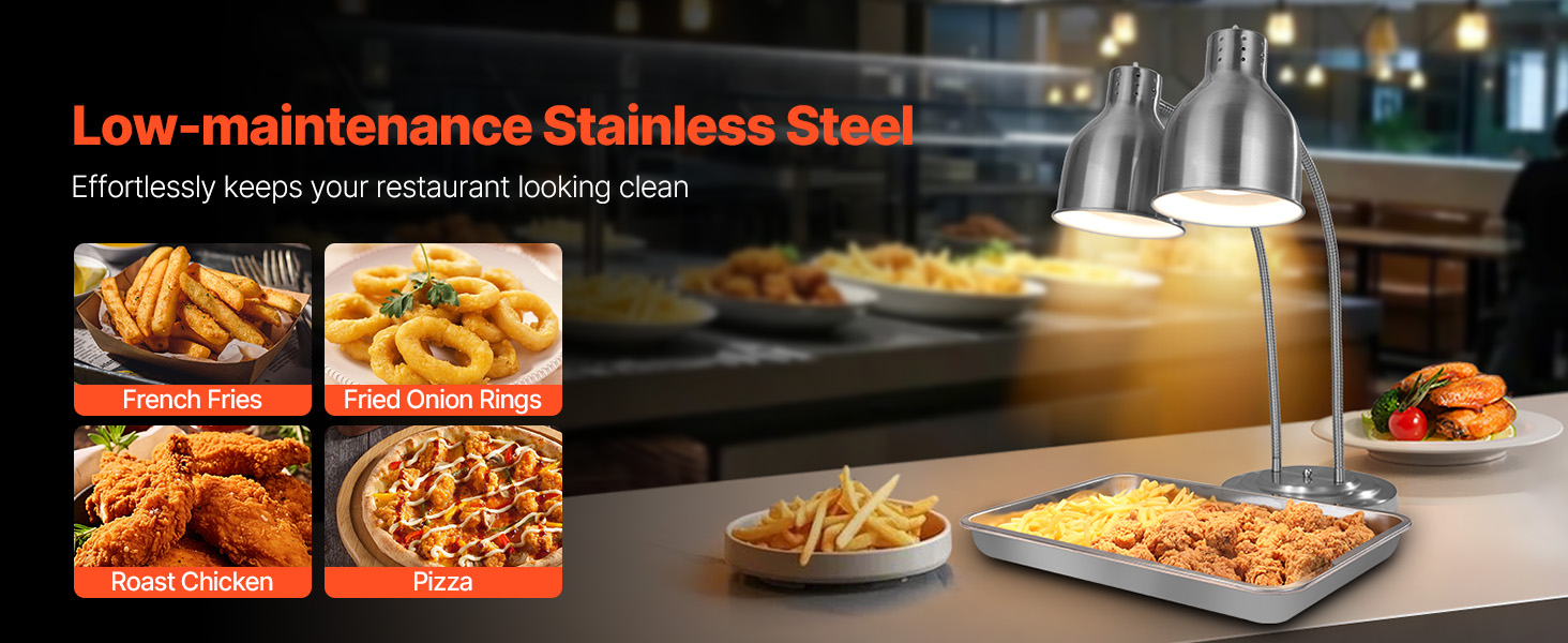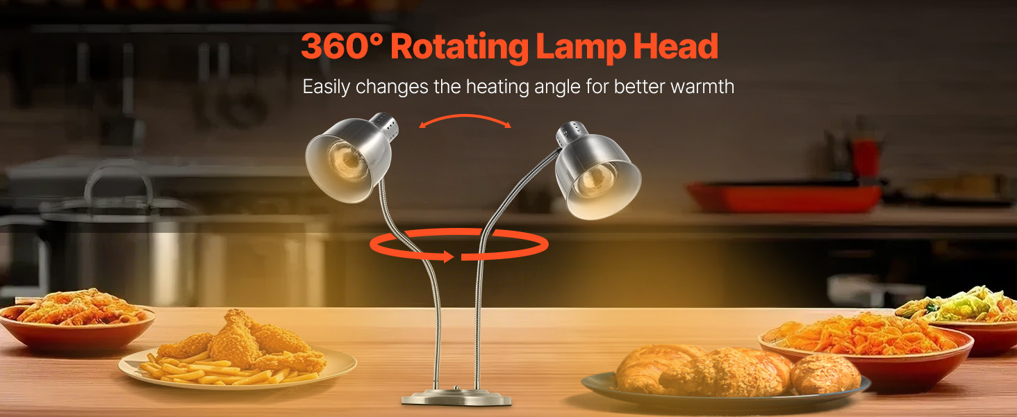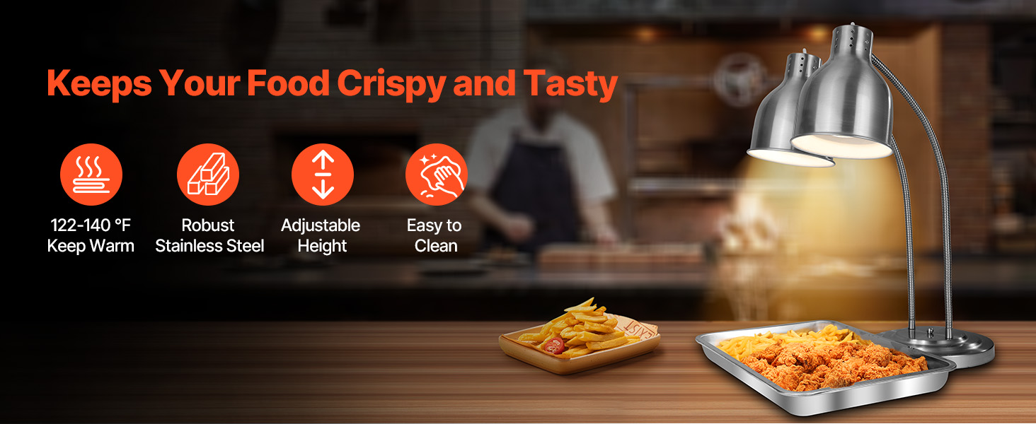 Keep your food warm and crispy with our versatile food heat lamp. Its 360° rotating head ensures even heat distribution for long-lasting flavor and texture. Made of robust stainless steel, easy to clean. Ideal for restaurants, cafes, and buffets. Also, it's great for melting chocolate and caramel!