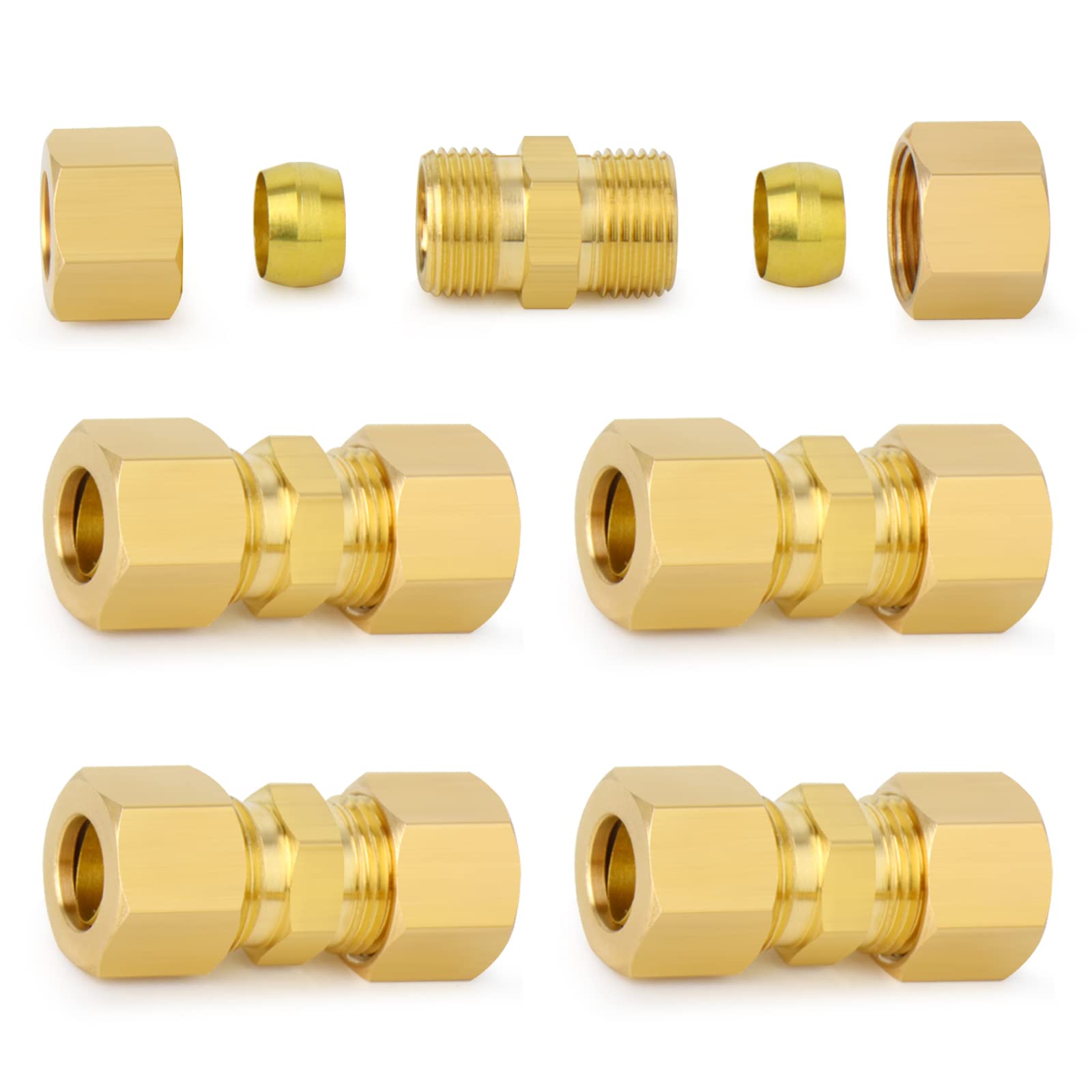 Brass Compression Tube Fitting, 1/2" OD x 1/2" OD Compression Union Connector(5-PACK)