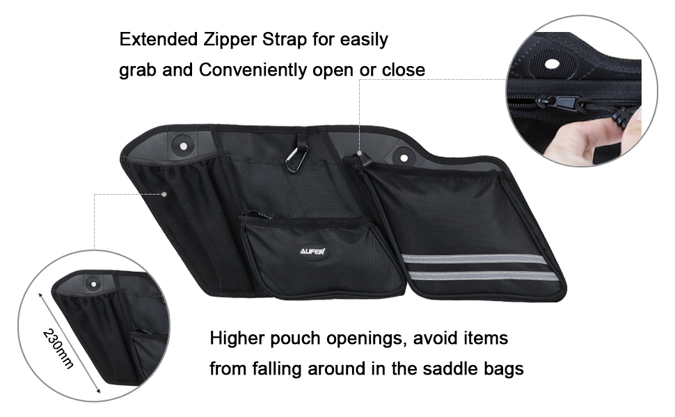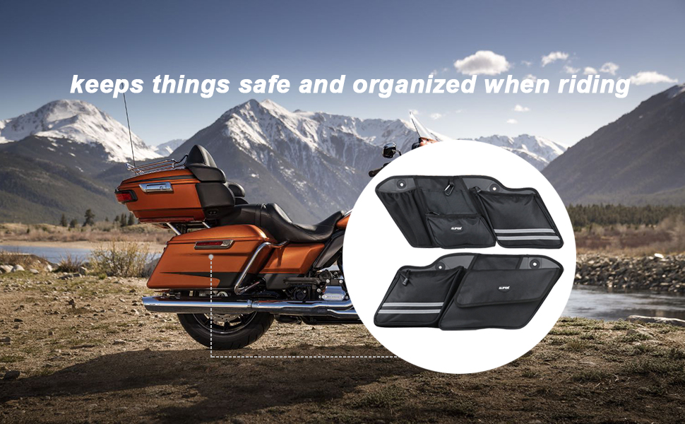 Feature: - This bag helps organize tools anywhere anytime when you need it,making your travel more convenient and easy. Specification: Color: Black Installation: Easy to install, Just put them in place,and then fastened them.No need any tool. Package Included 1 Pairs (Left and Right side) saddlebag organizers