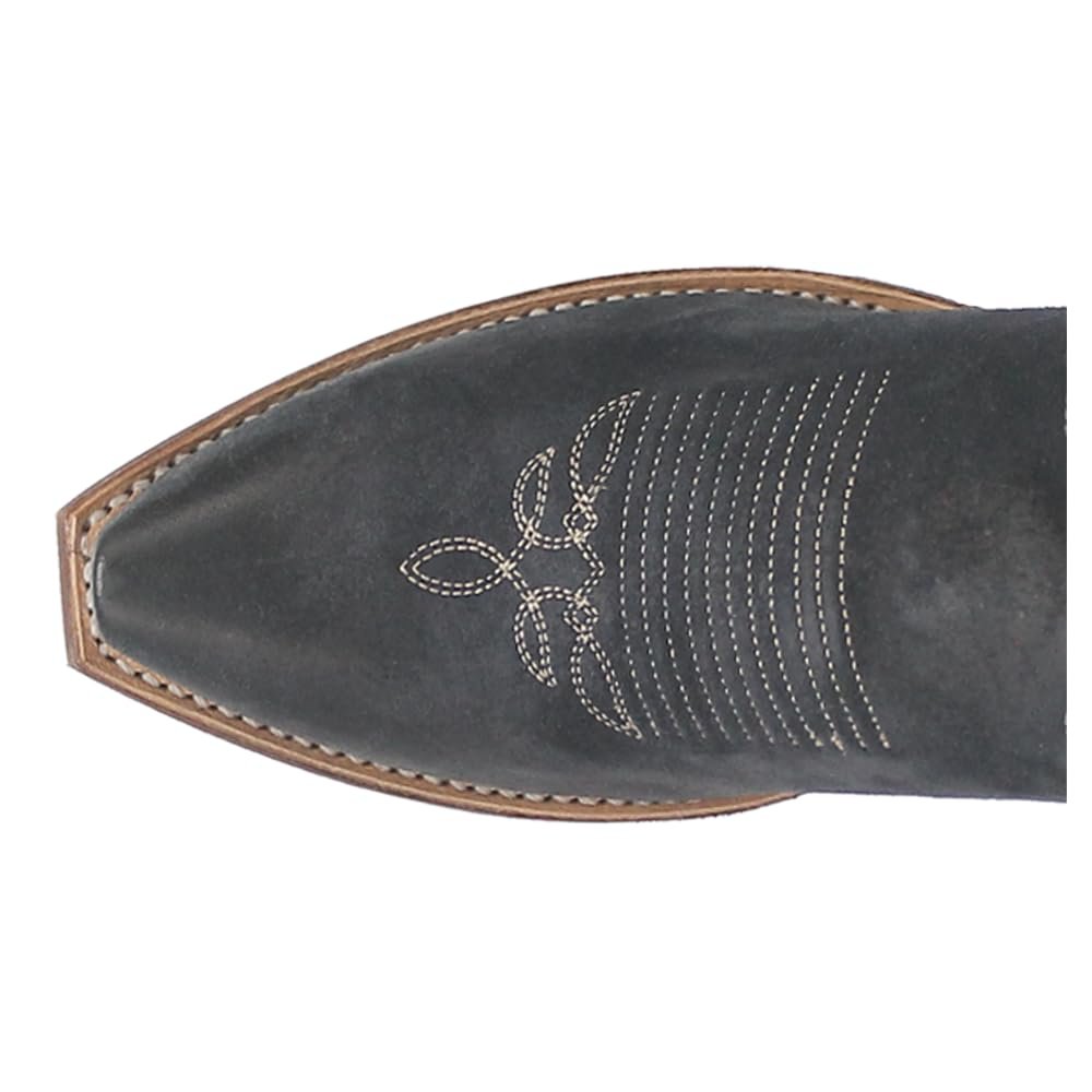The Kama leather boot radiates old-fashioned grace with its vintage appeal. Adorned with intricate embroidery stitching along the shaft, it showcases a classic silhouette with a snip toe and medium cowboy heel. Designed for all-day comfort, it features a cushioned insole and Laredo Flex rubber outsole, ensuring both style and ease with every step.