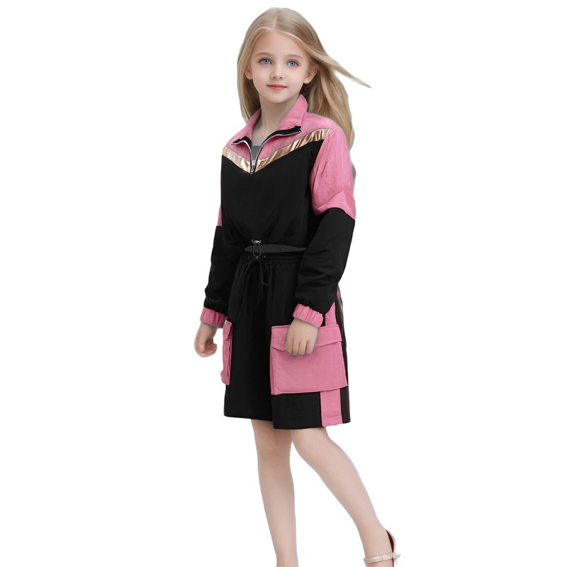 Kids girls sports set is featured with color block patchwork to make your child look stylish and energetic.