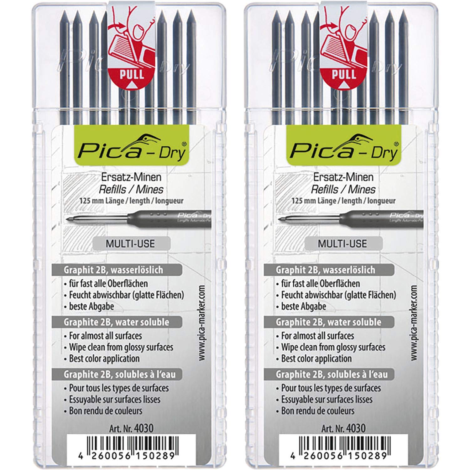 -Dry Graphite 2B Water Soluble Multi Use Graphite Refill Leads - 2 Sets of 10 Graphite 2B Leads