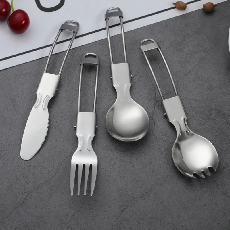 Titanium folding tableware for camping, portable cutlery, healthy tableware
