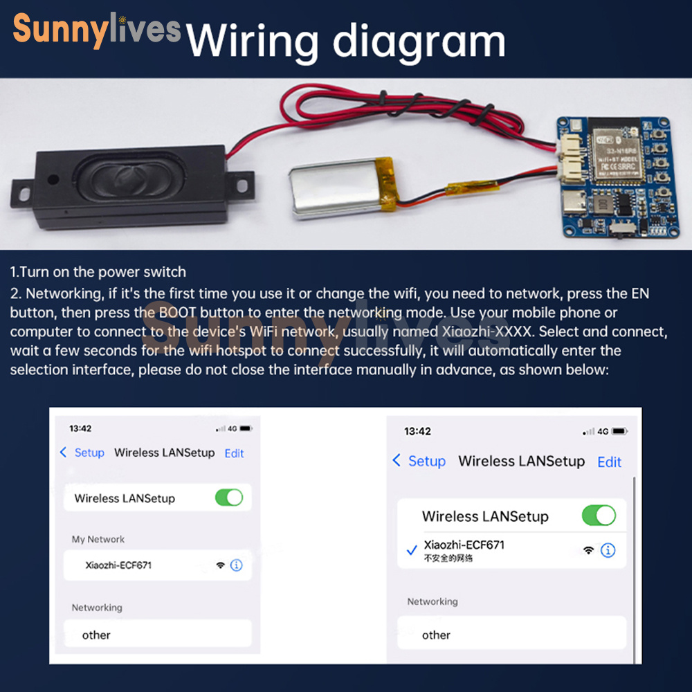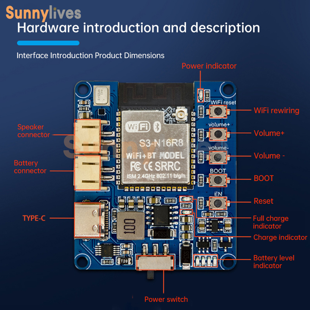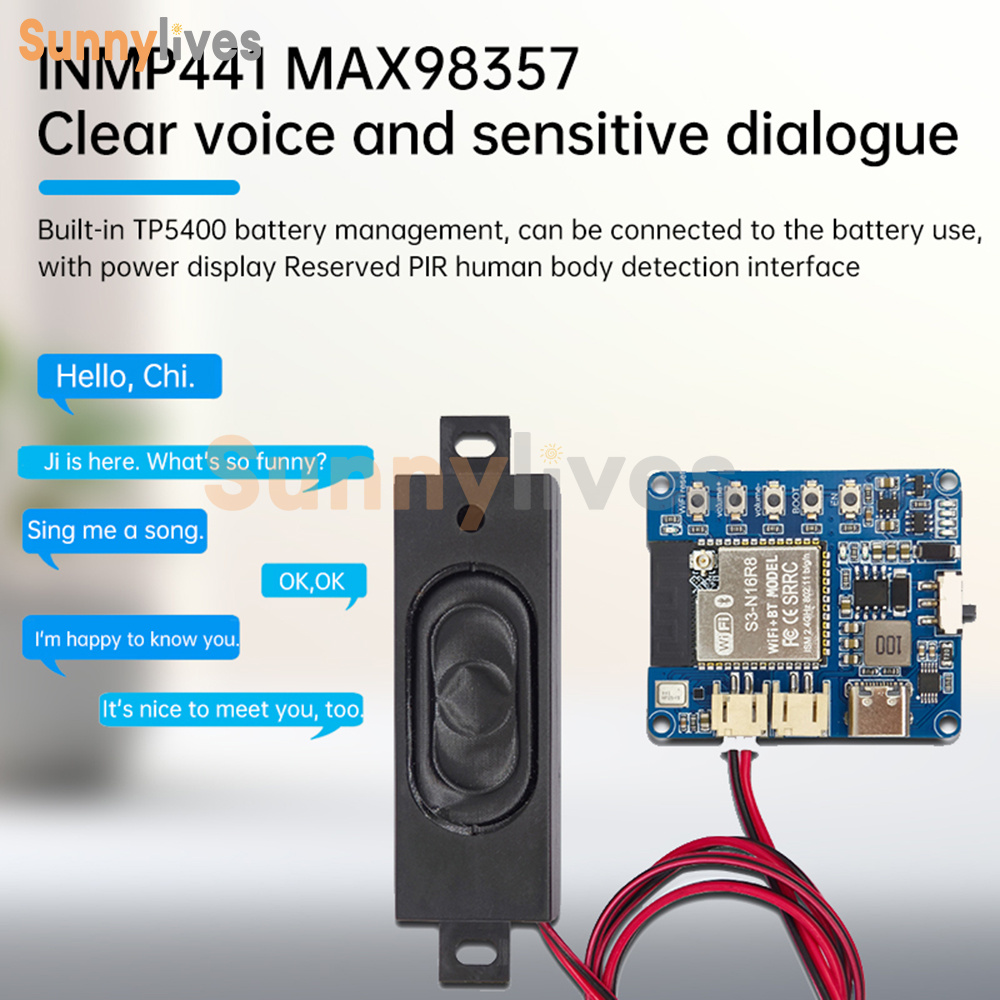 1. Integrated audio components: built-in INMP441 microphone and MAX98357 amplifier, clear voice and sensitive dialog.