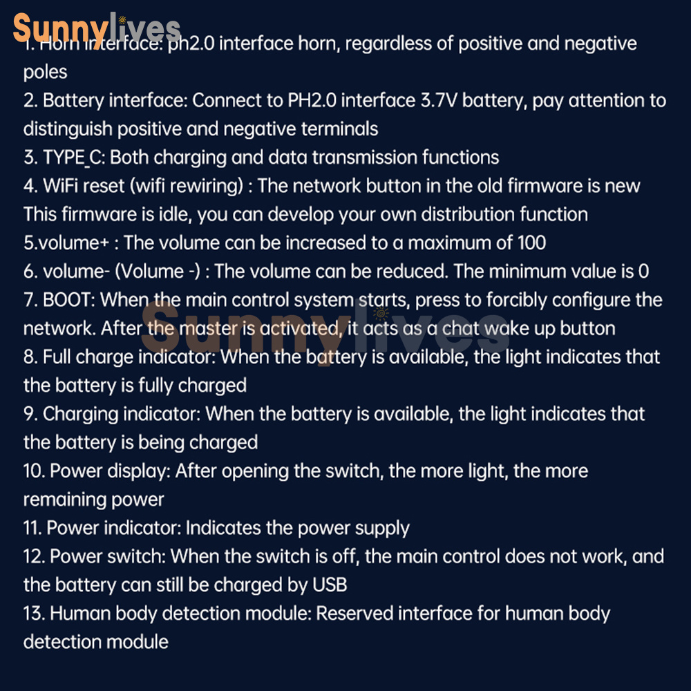 Speaker interface: connect to ph2.0 interface speaker, no positive and negative poles