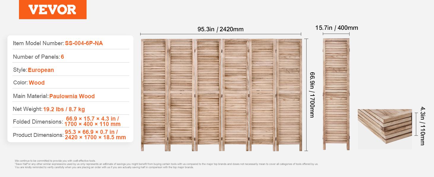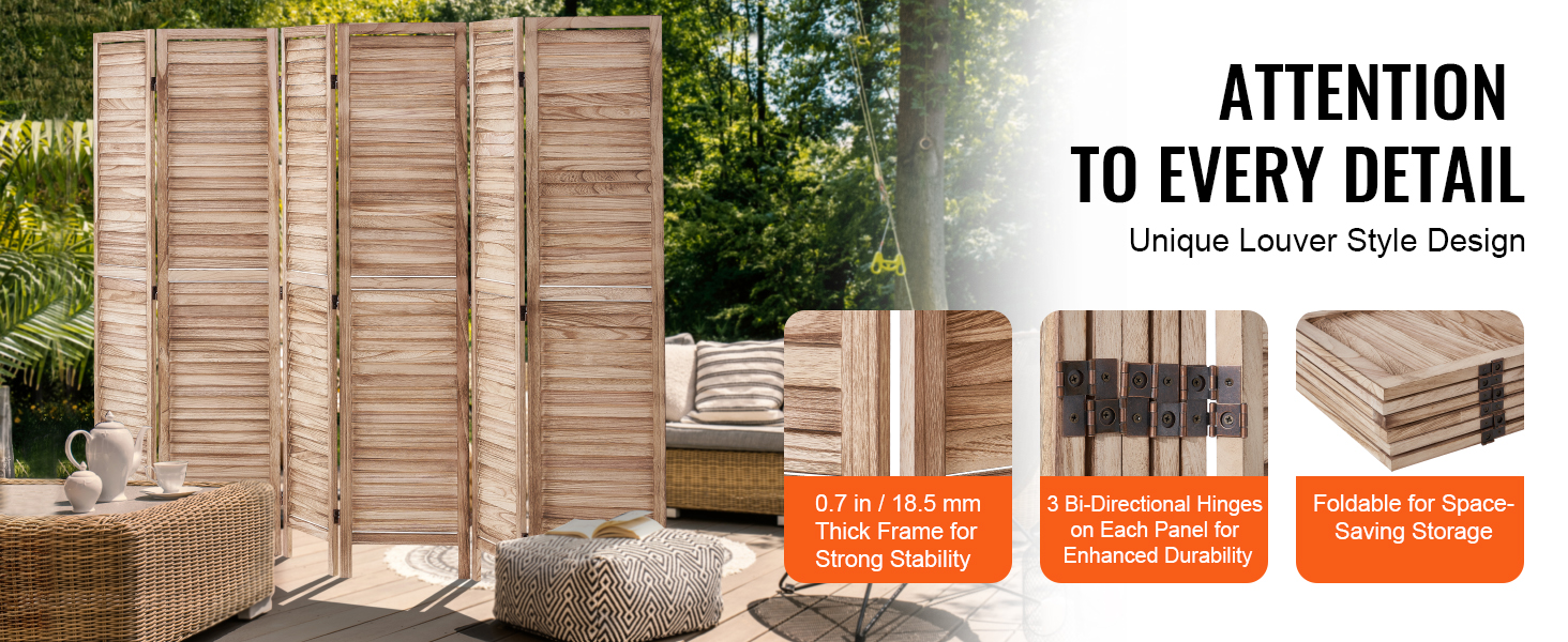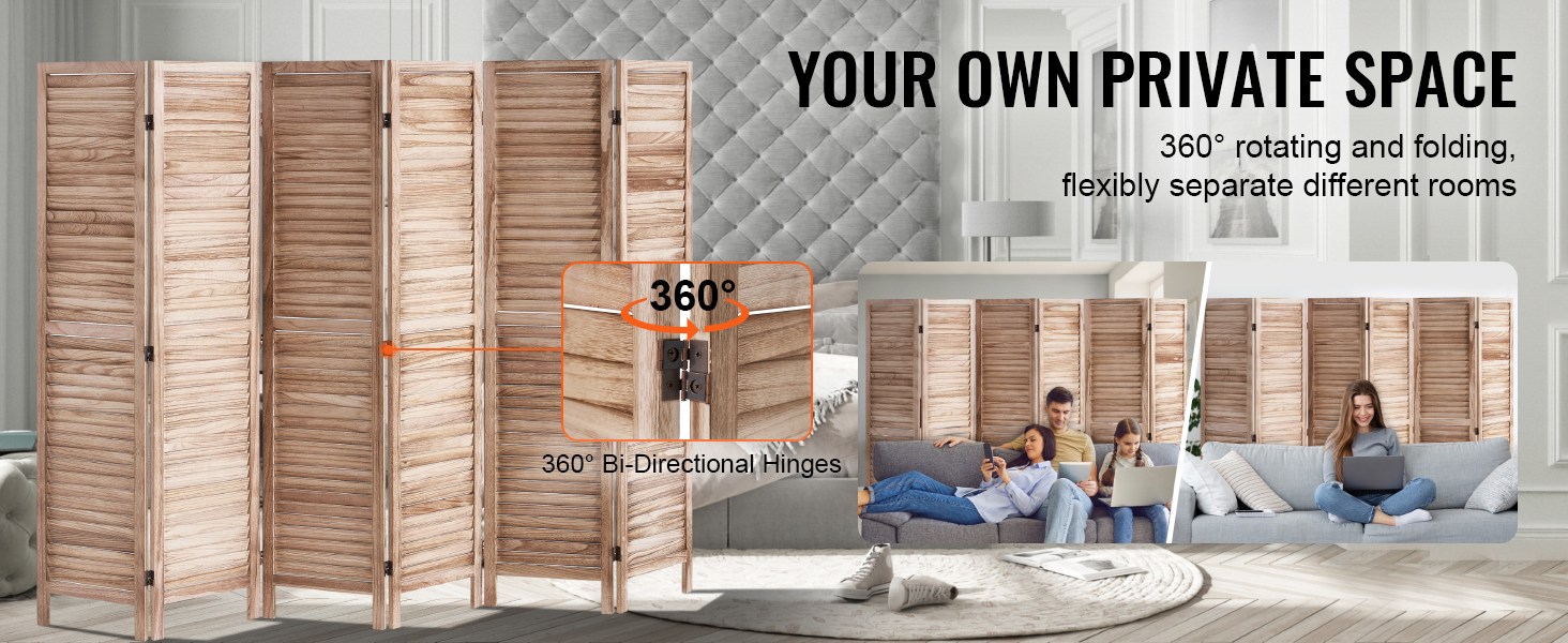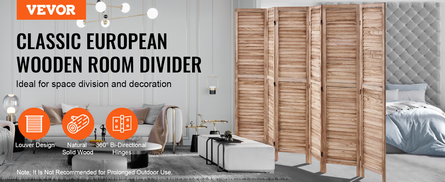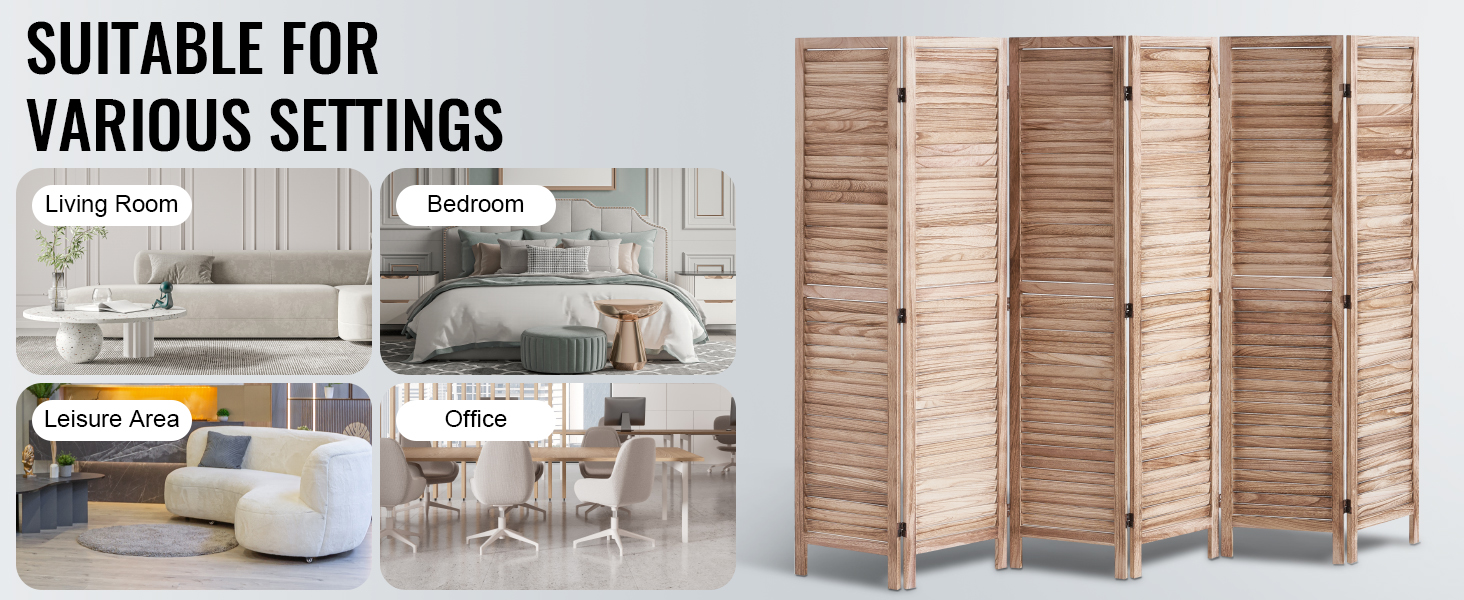 European Classic Design: This 95-inch rustic room divider combines six elegant European-style panels, offering ample privacy for any space. Its sleek louvered design serves both as a stylish screen and a decorative piece, effortlessly enhancing your home's aesthetic.